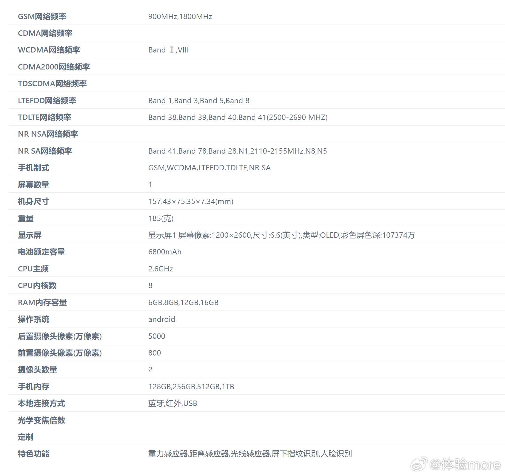 6.6英寸2600*1200p,局部峰值6500nits,45W+7000mAh,2.6GHz(疑似天玑7050,海外版是天玑7100),前置8MP,后置50MP(海外版是108MP),157.43*75.35*7.34mm,185g,金属中框、短焦指纹、AI键等等。