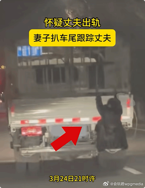 疑丈夫出轨 女子挂货车车尾跟踪 丈夫被扣3分新疆喀什近日发生一起惊险的交通事件,一名女子因怀疑丈夫出轨,竟趁夜间自行挂在丈夫驾驶的货车车尾,试图以此方式跟踪丈夫行踪。货车司机对此毫不知情,驾车行驶过程中被民警查获,民警在查获后询问男子:“你认识后面挂着的人吗?”男子:“认识,是我老婆。”民警在现场及时制止了这一危险行为,避免了货车行驶过程中,因车尾挂人可能引发的坠车、交通事故等严重后果。根据交通法规相关要求,机动车驾驶人在驾驶车辆前,必须对车辆进行全面的安全检查,绕车一周排查周边及车辆周边的安全隐患是基本操作。涉事的货车司机因未履行该操作,未能发现车尾的妻子,违反了道路交通安全相关规定,民警依法对其作出记3分、罚款200元的行政处罚。