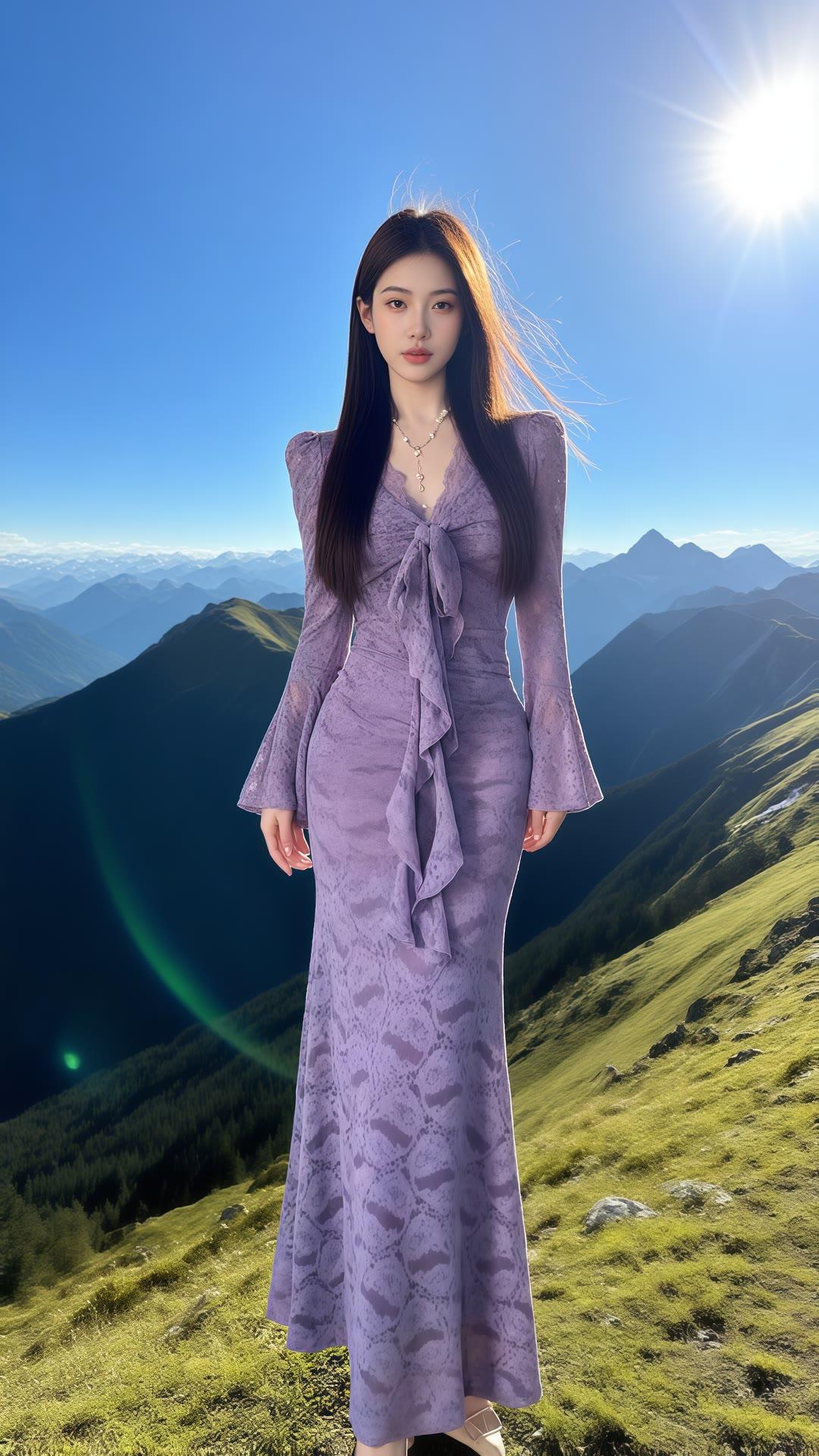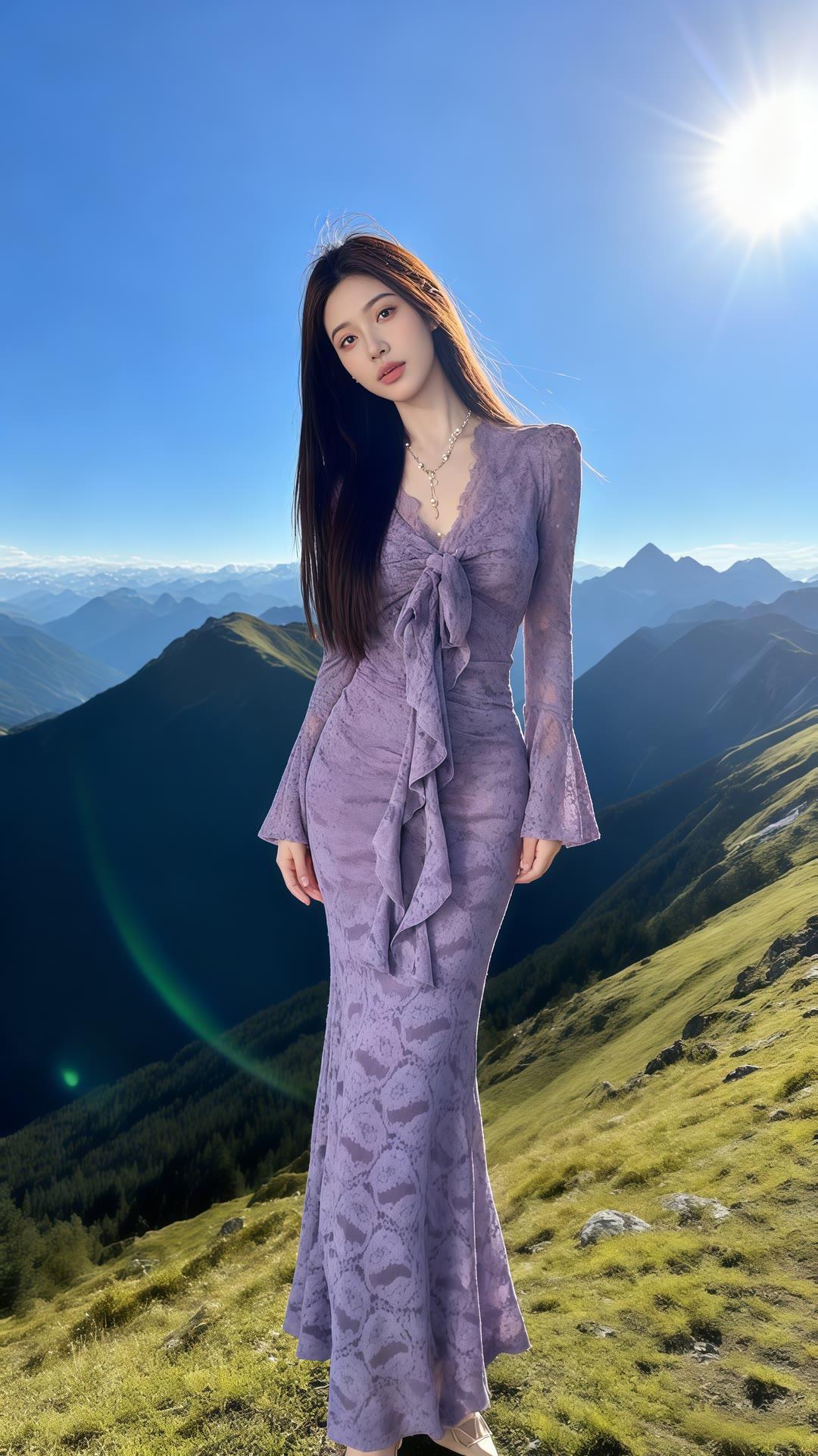 山间仙子,紫裙飘逸,阳光洒落,美不胜收!