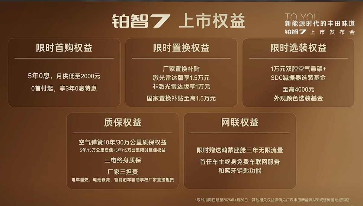 广汽丰田铂智7上市坦白局 最低价格叠加完补贴优惠后仅需要14.78万元起!广汽丰田铂智7这正式上市价格真的太香了呀!而且全系限时权益价格都没有超过20万!相较于同级别车型来说,铂智7这波价格真的是诚意满满了!还有厂家三担责,喜欢下单就完事啦!厂家都给你考虑好了! 丰田铂智7定档3月29日上市