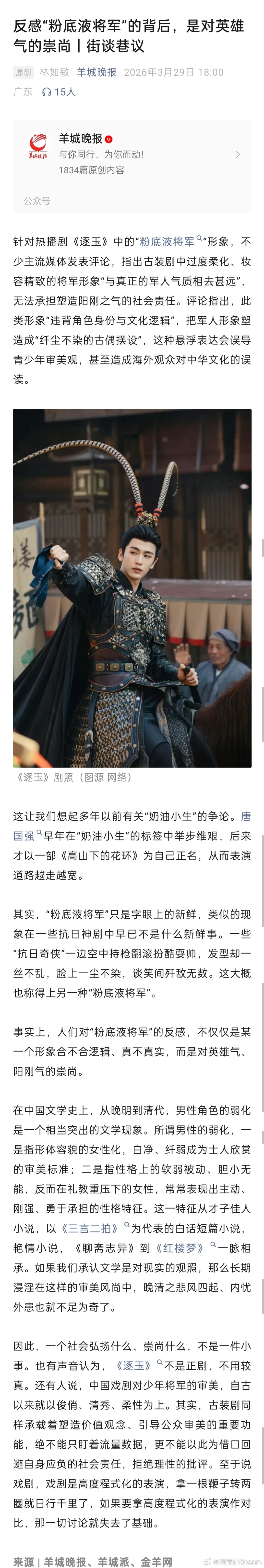 媒体:反感“粉底液将军”的背后,是对英雄气的崇尚。对粉底液将军反感是上纲上线吗