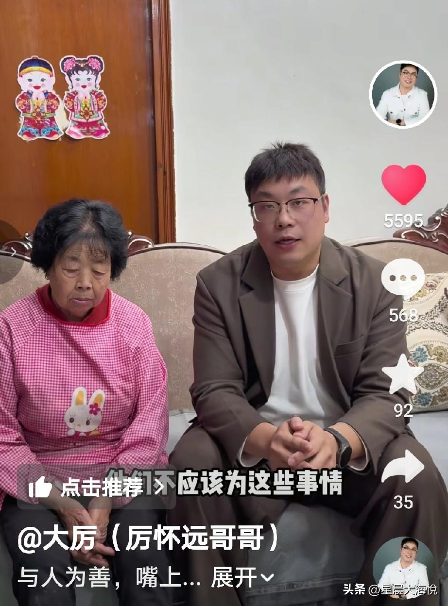 厉怀远大哥发视频说:相信厉怀远和他的媳妇会处理好两个人之间的问题,因为他们已经是成年人了, 刚刚看到厉怀远去看望奶奶,然而看的出来奶奶不是很高兴,可能是因为厉怀远和媳妇闹离婚的事情搞得大家都不怎么高兴, 厉怀远大哥特别会说,还说这是家事他们会关起门处理好这件事的, 但是请大家不要上升网暴到他们的老人和孩子,他的爸爸妈妈还有奶奶都是本分的人,还有他的侄子也是无辜的,