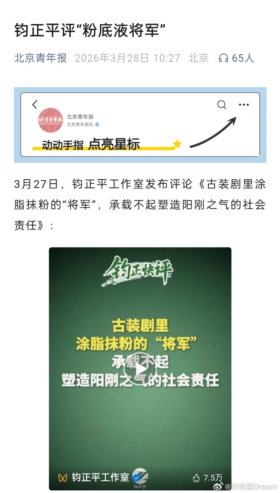 🔻钧正平评“粉底液将军”。对粉底液将军反感是上纲上线吗
