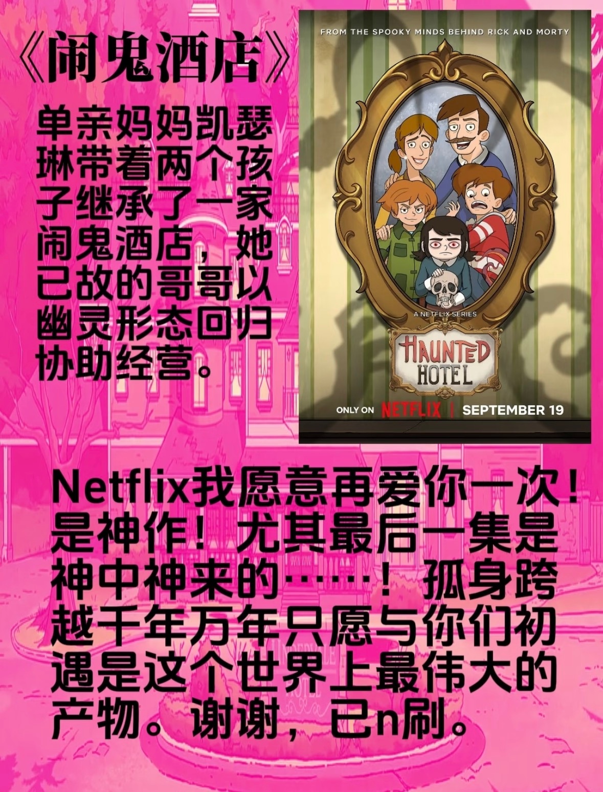 我心中欧美青少年怪诞动画的四大天王你看过几部啊! 动漫点评团海外动漫名场面 1、《希尔达》勇敢少女希尔达与神奇生物的冒险故事。希尔达我们喜欢你!!!这是四部中最可爱温柔、也是最符合子供向的作品。Hilda所经历的一切缤纷奇幻却又饱含爱与善意,这是我心中对童年最好的设想。2、《闹鬼酒店》单亲妈妈凯瑟琳带着两个孩子继承了一家闹鬼酒店,她已故的哥哥以幽灵形态回归协助经营。Netflix我愿意再爱你一次!是神作!尤其最后一集是神中神来的……!孤身跨越千年万年只愿与你们初遇是这个世界上最伟大的产物。