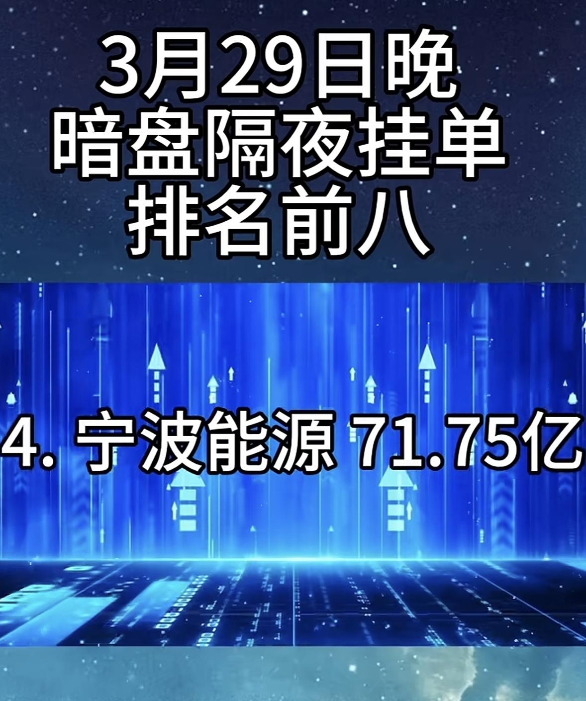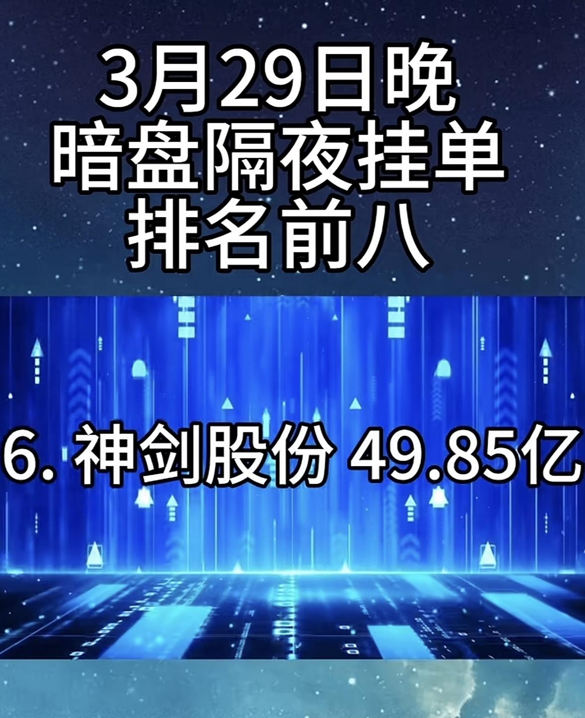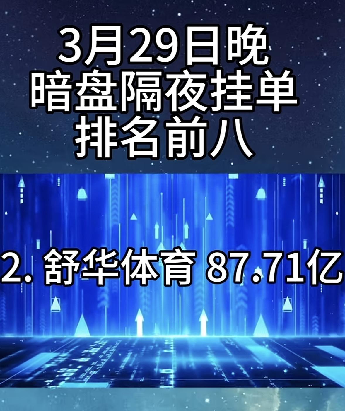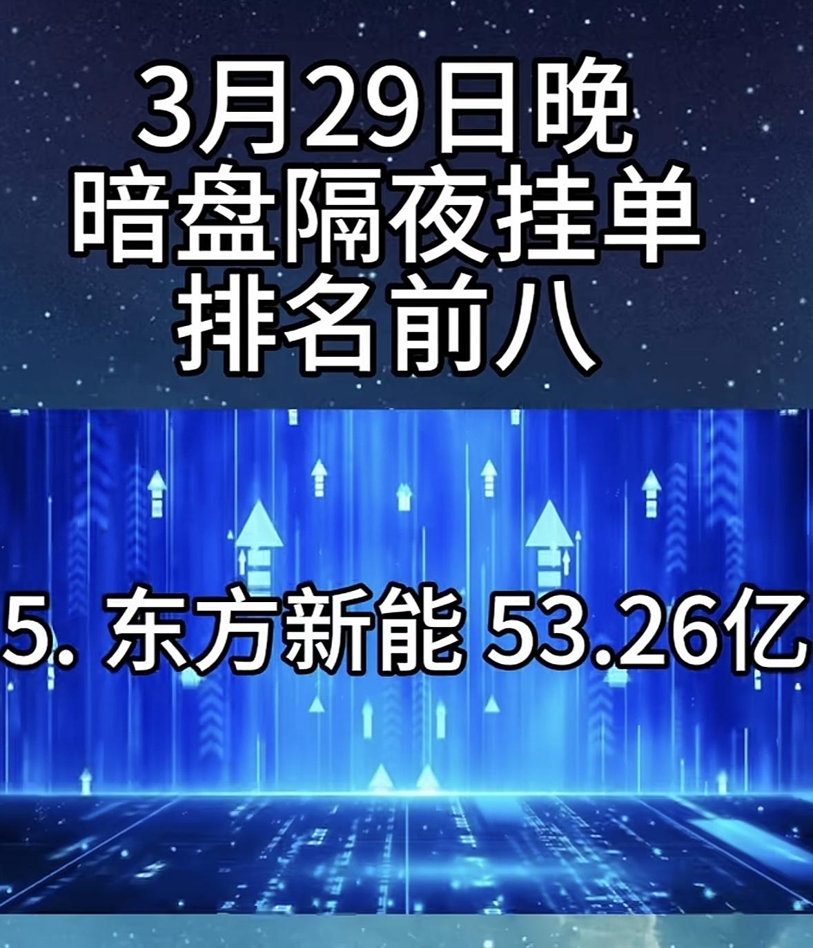 3月30日周一暗盘隔夜挂单排行榜揭晓 3月29日晚暗盘隔夜挂单排名前八,利欧股份以33.29亿挂单量引人注目。此前2月3日利欧股份挂单就达67.33亿,它是水泵领域老牌企业,还布局数字营销等业务,足见资金关注度高。 之前周末暗盘隔夜单排名里,利欧股份也以39.18亿挂单领跑,它沾着文化传媒、AI营销和液冷概念,都是当下市场热点。不过挂单多不代表股价一定涨,市场复杂多变。像鲁信创投、金风科技等也有大量挂单,反映出资金对不同板块的布局意愿。咱普通人投资不能盲目跟风,得看清背后逻辑,守好风险底线。