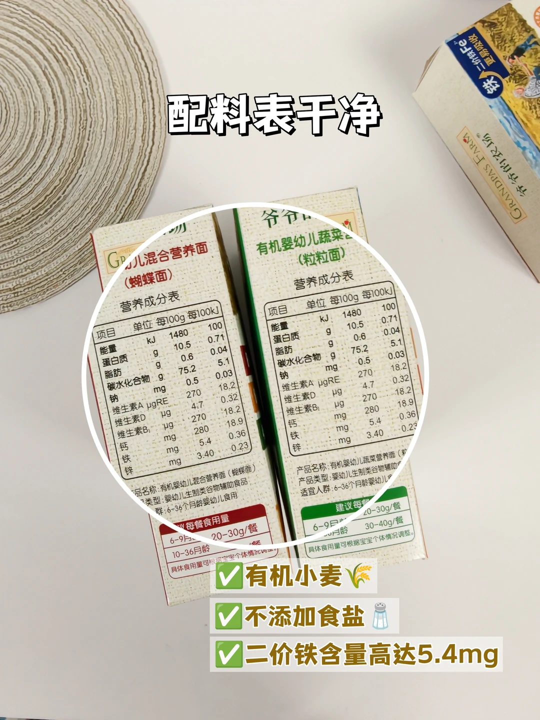 他们家的面都是符合婴标的,原料是有机小麦🌾🌾🌾,没有添加食用盐、糖、香精、防腐剂等,配料表很干净,孩子吃很放心