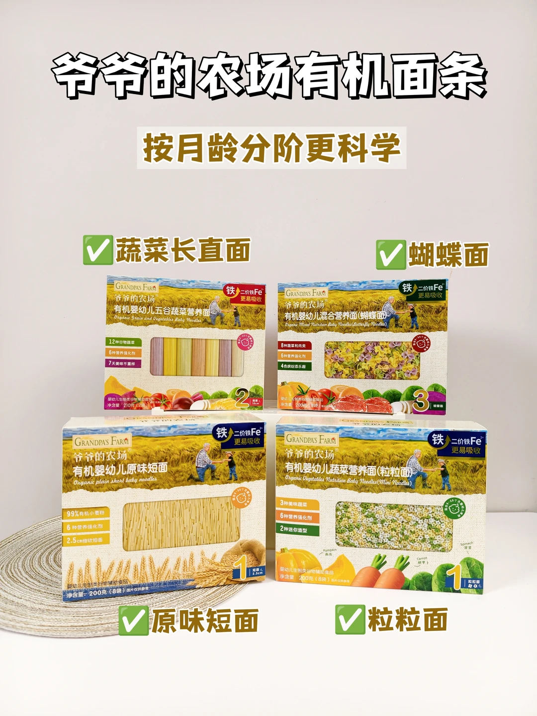 我家宝👧🏻从小吃得就是爷爷的农场有机面条,他家是按照月龄科学分阶的,可以根据宝宝不同月龄的口腔等发育状况来选择~