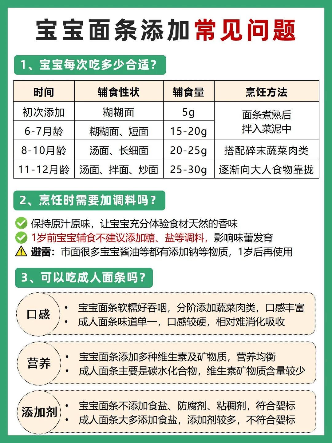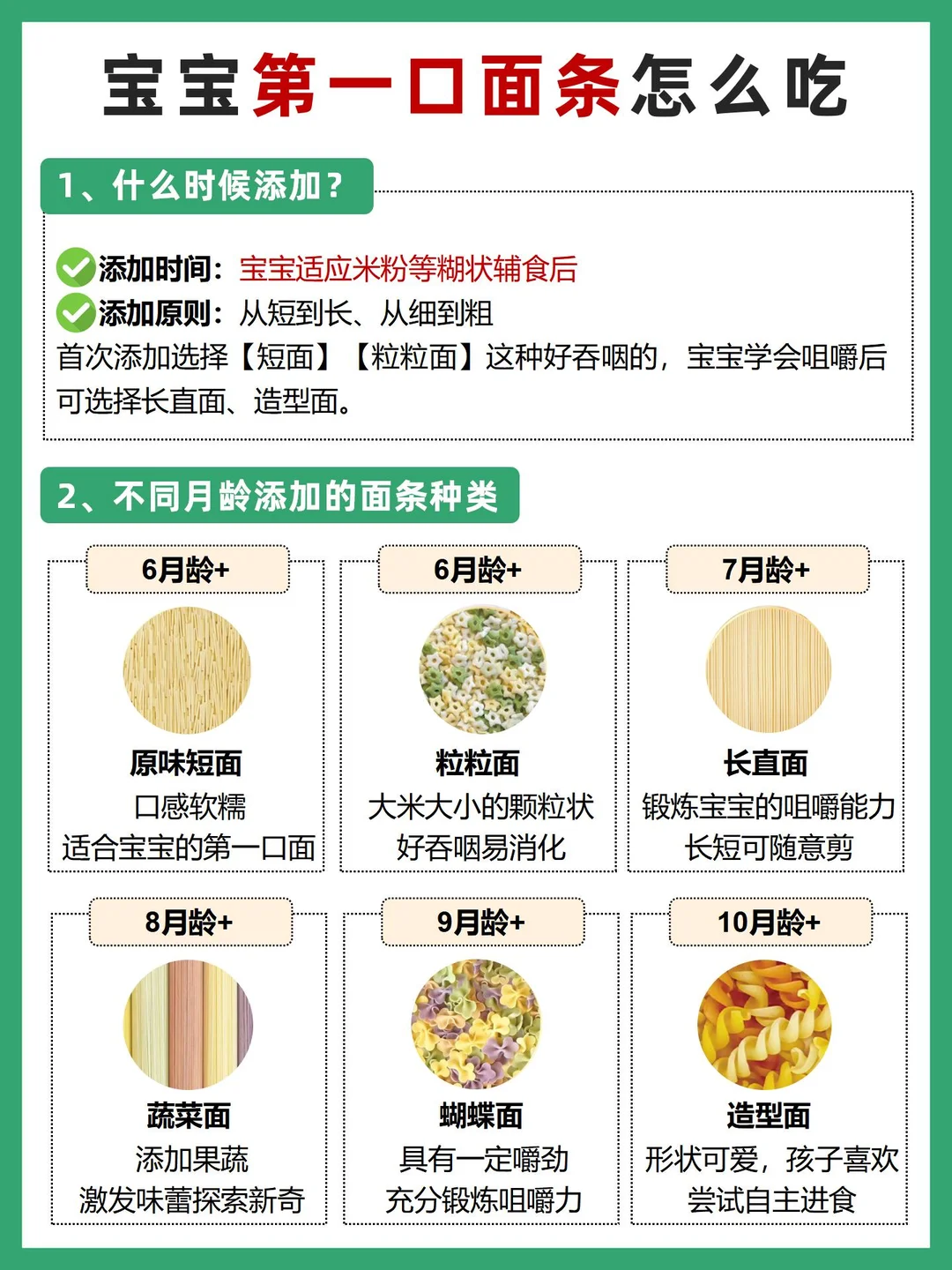 ✅首次添加选择【短面】【粒粒面】这种好吞咽的,宝宝学会咀嚼后可选择长直面、造型面。