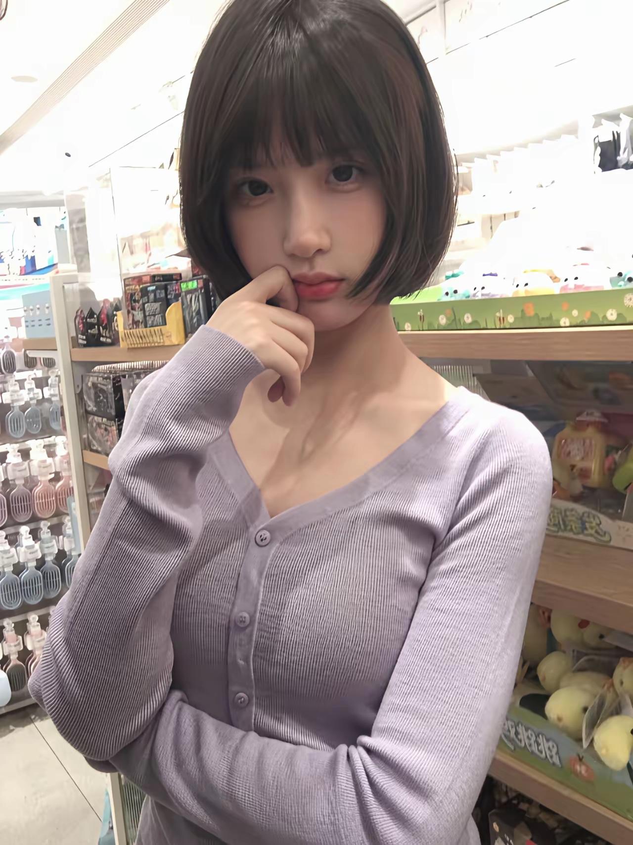 终于把长发换成了齐耳波波头✨。剪发时看着发丝落下,像把积攒的琐碎烦恼也一并剪掉了。 风拂过脖颈的清凉感太治愈,淡紫色针织衫衬得短发愈发灵动。空气刘海修饰脸型,耳侧碎发柔和了下颌线,整个人少了拖沓,多了日系少女的清新感。 在玩偶店随手拍的照片,满是自在松弛的氛围。头发短了,快乐却变长了,这是送给自己的小确幸。