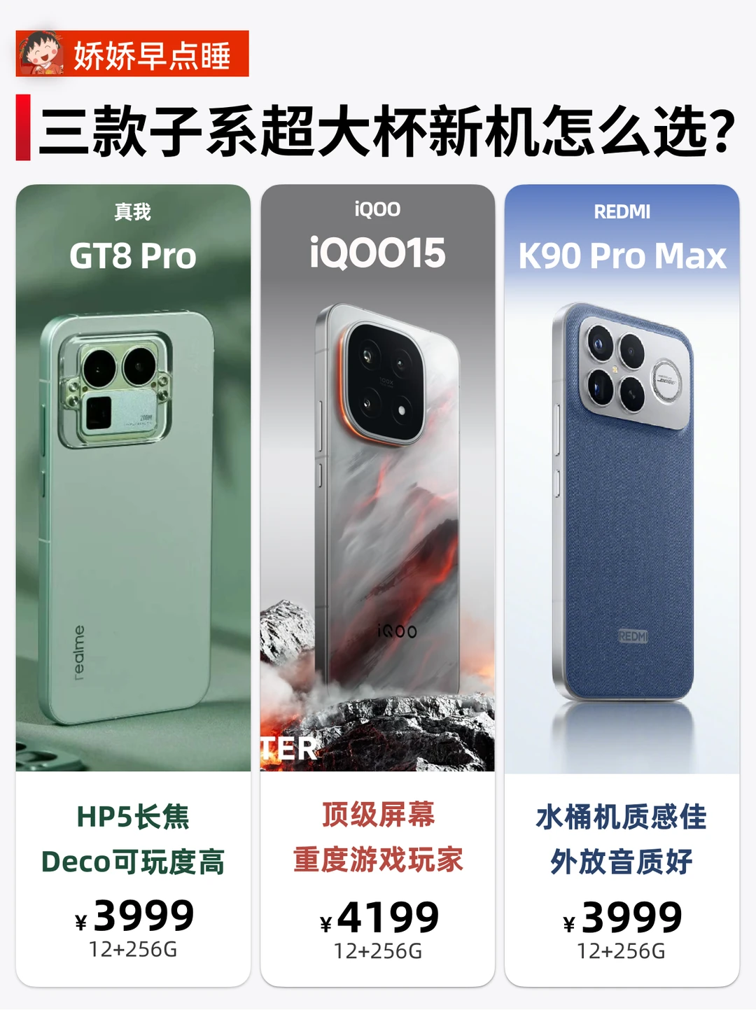 红米K90ProMax、真我GT8Pro都是3999元起,iQOO 15:4199起。