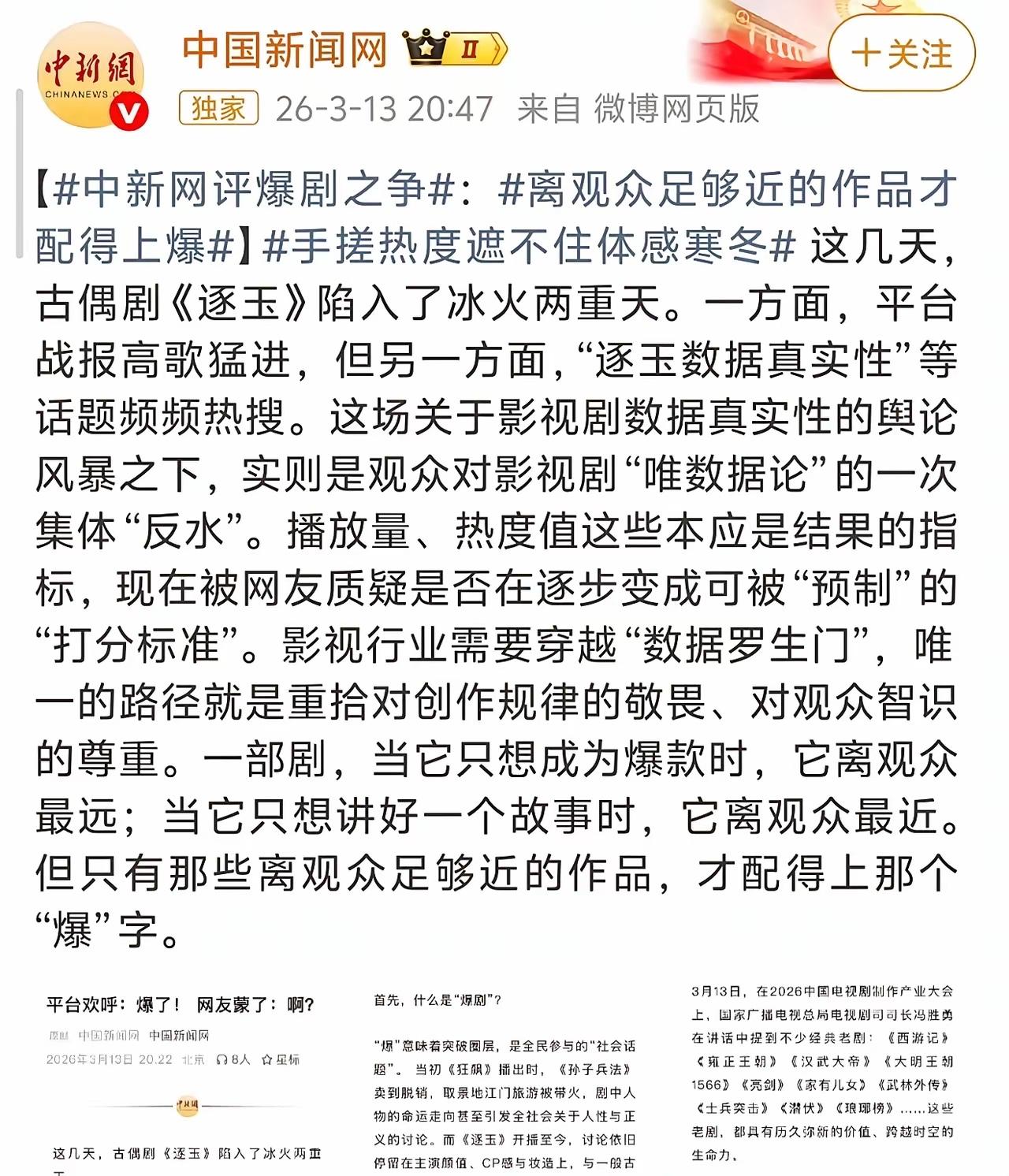 官媒点名!《逐玉》彻底凉了 《逐玉》庆功宴取消!3月27日军方官媒钧正平、浙江