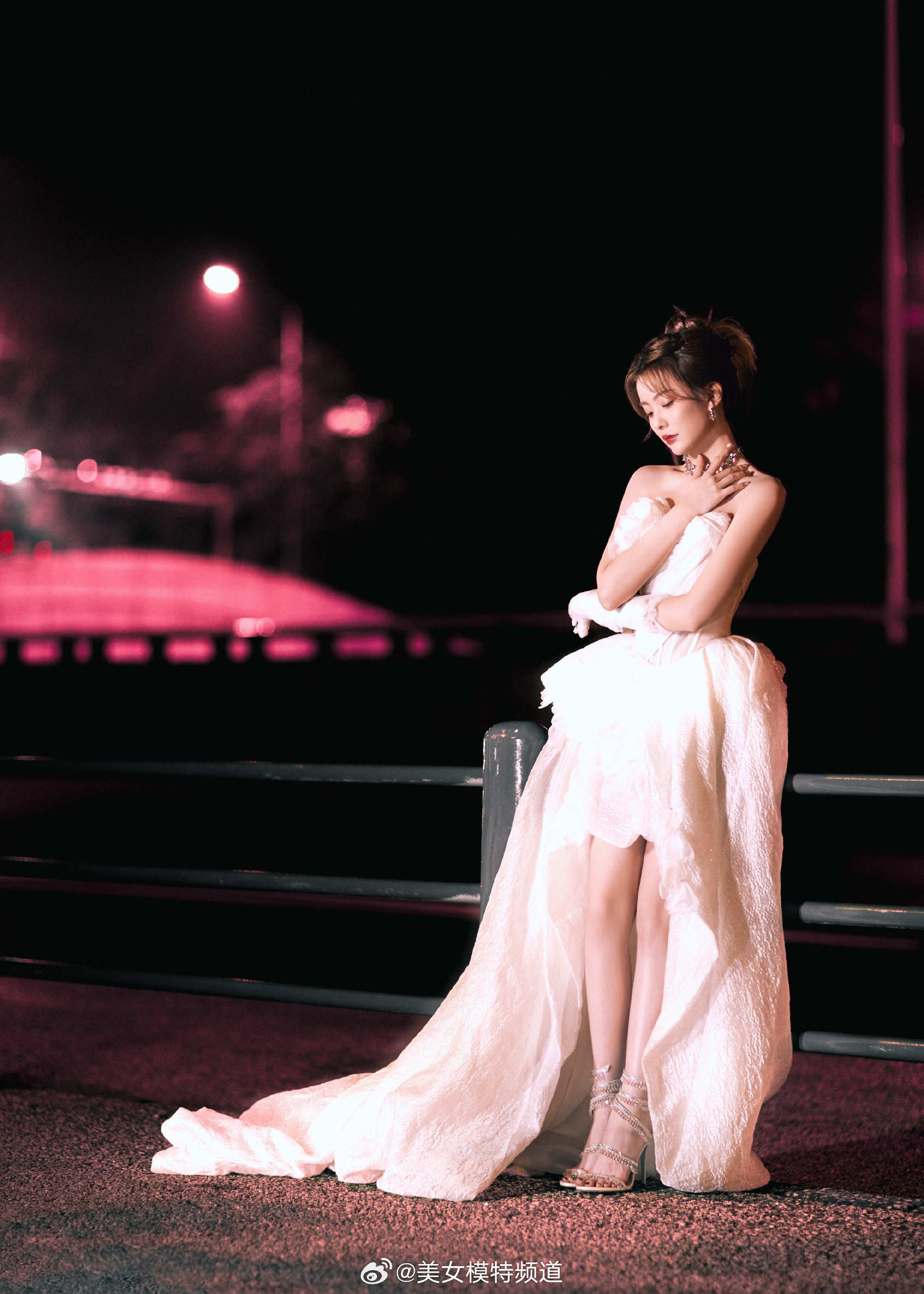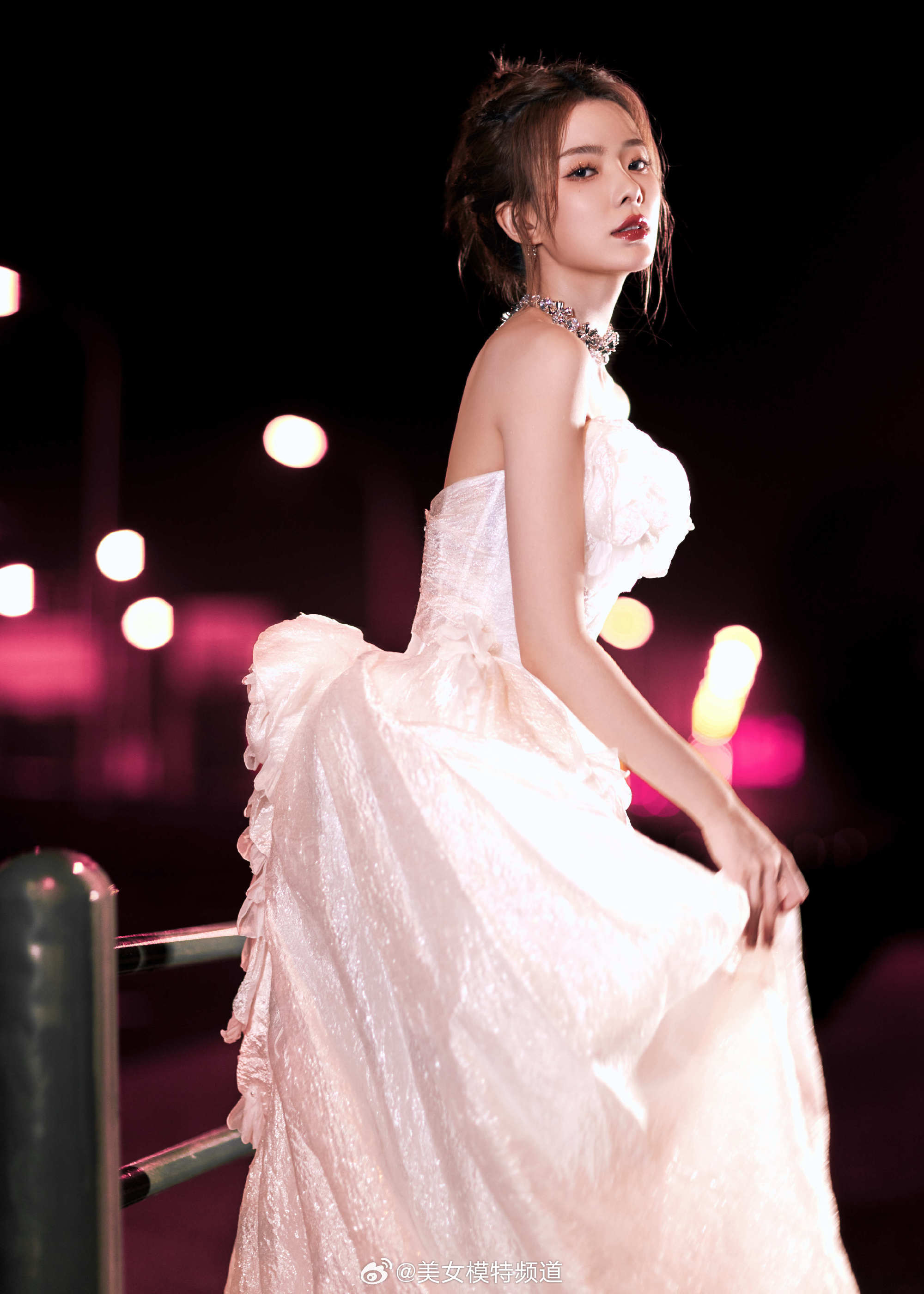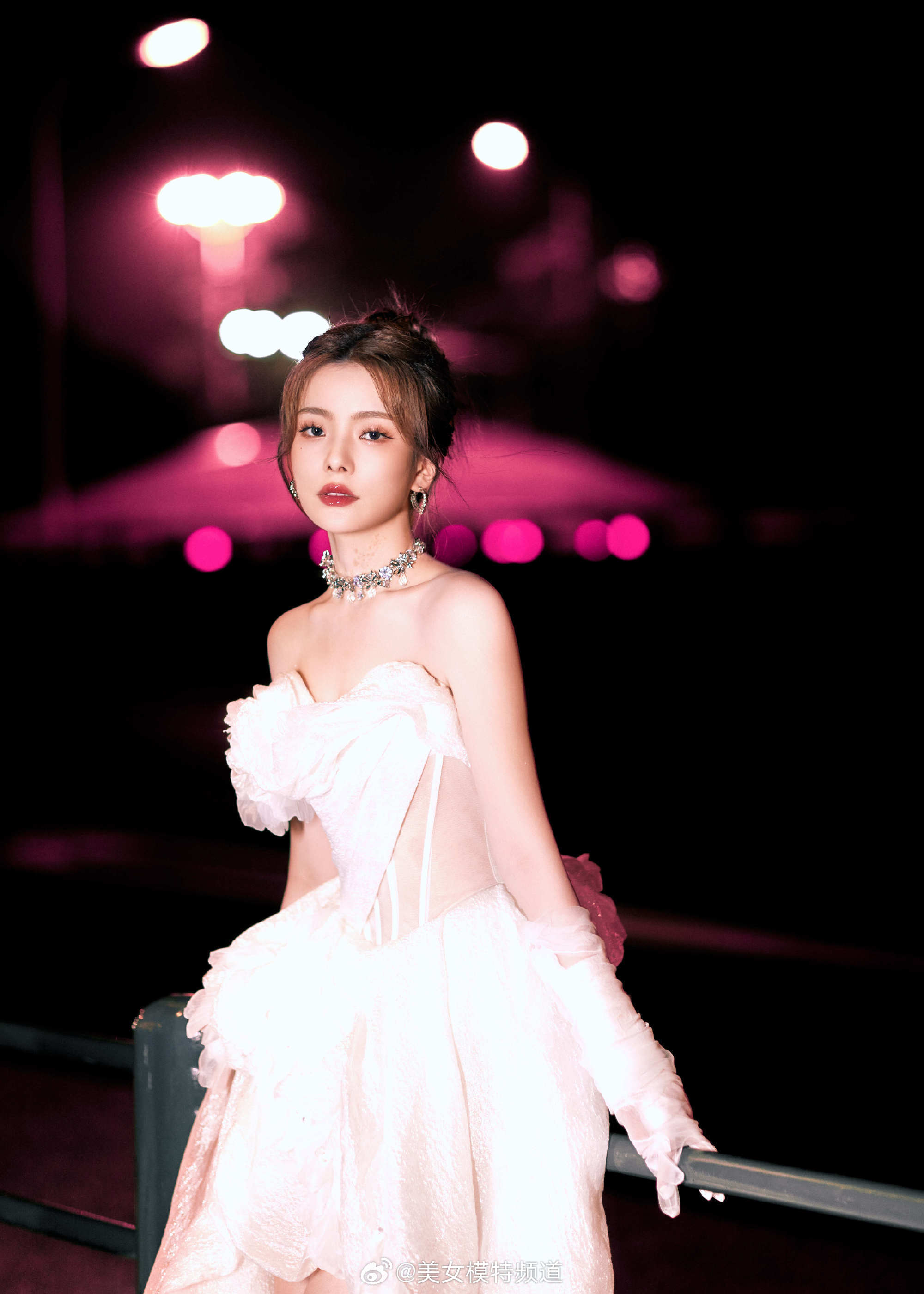 吴宣仪,玫瑰色彩抹胸裙装,自信浪漫。吴宣仪