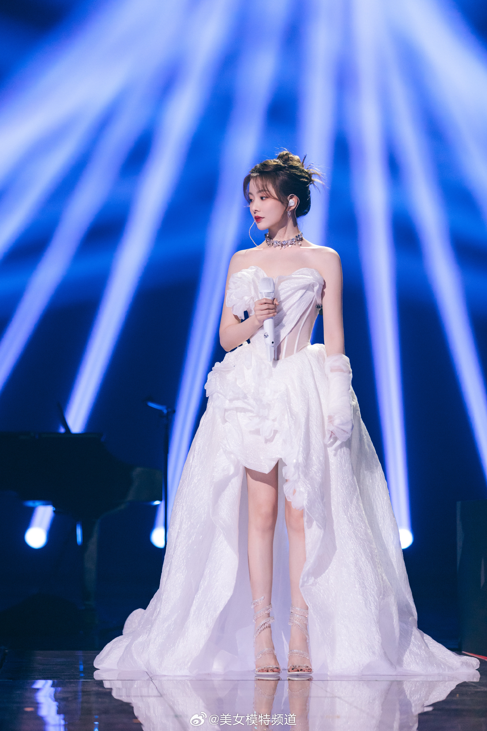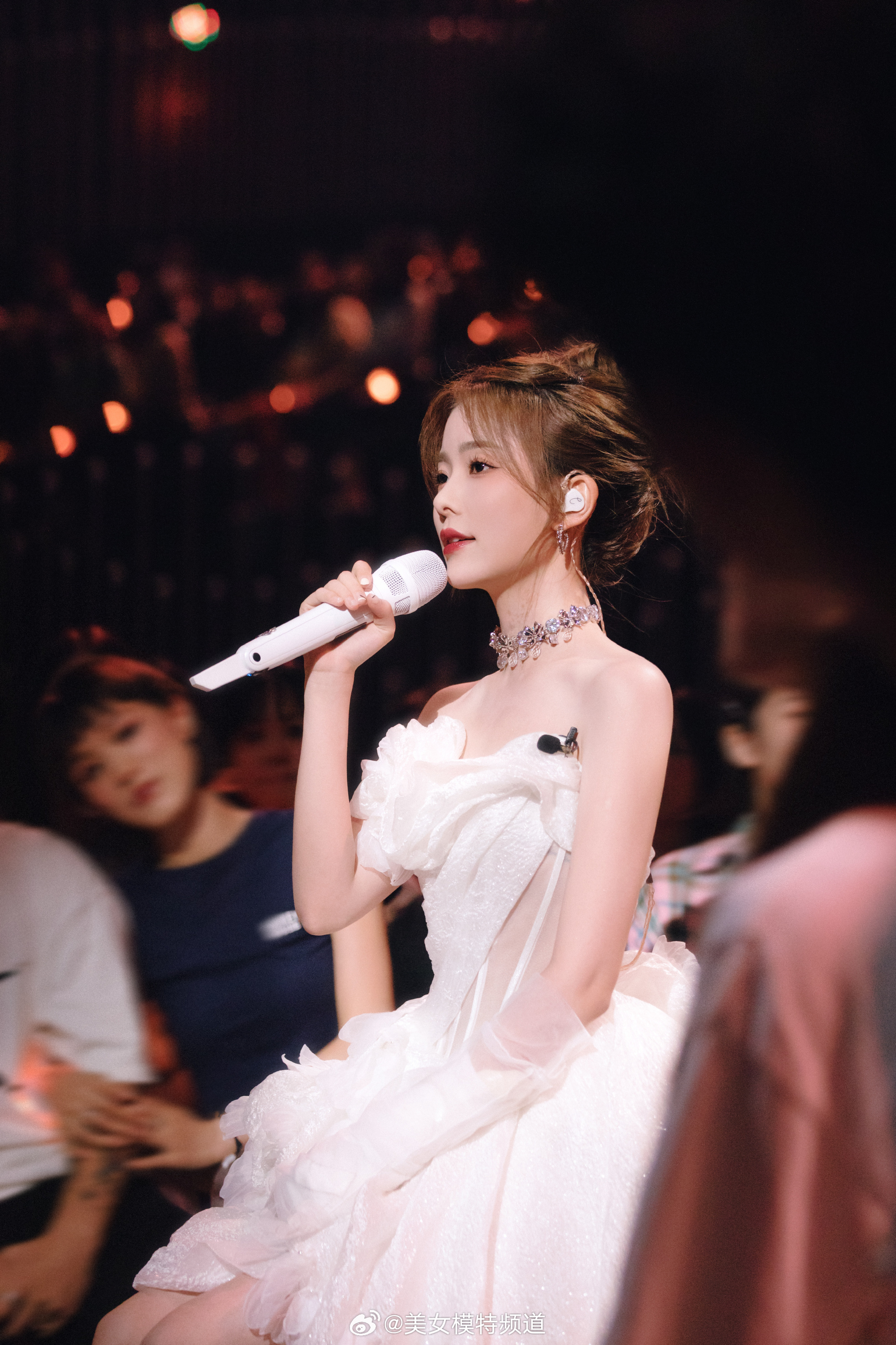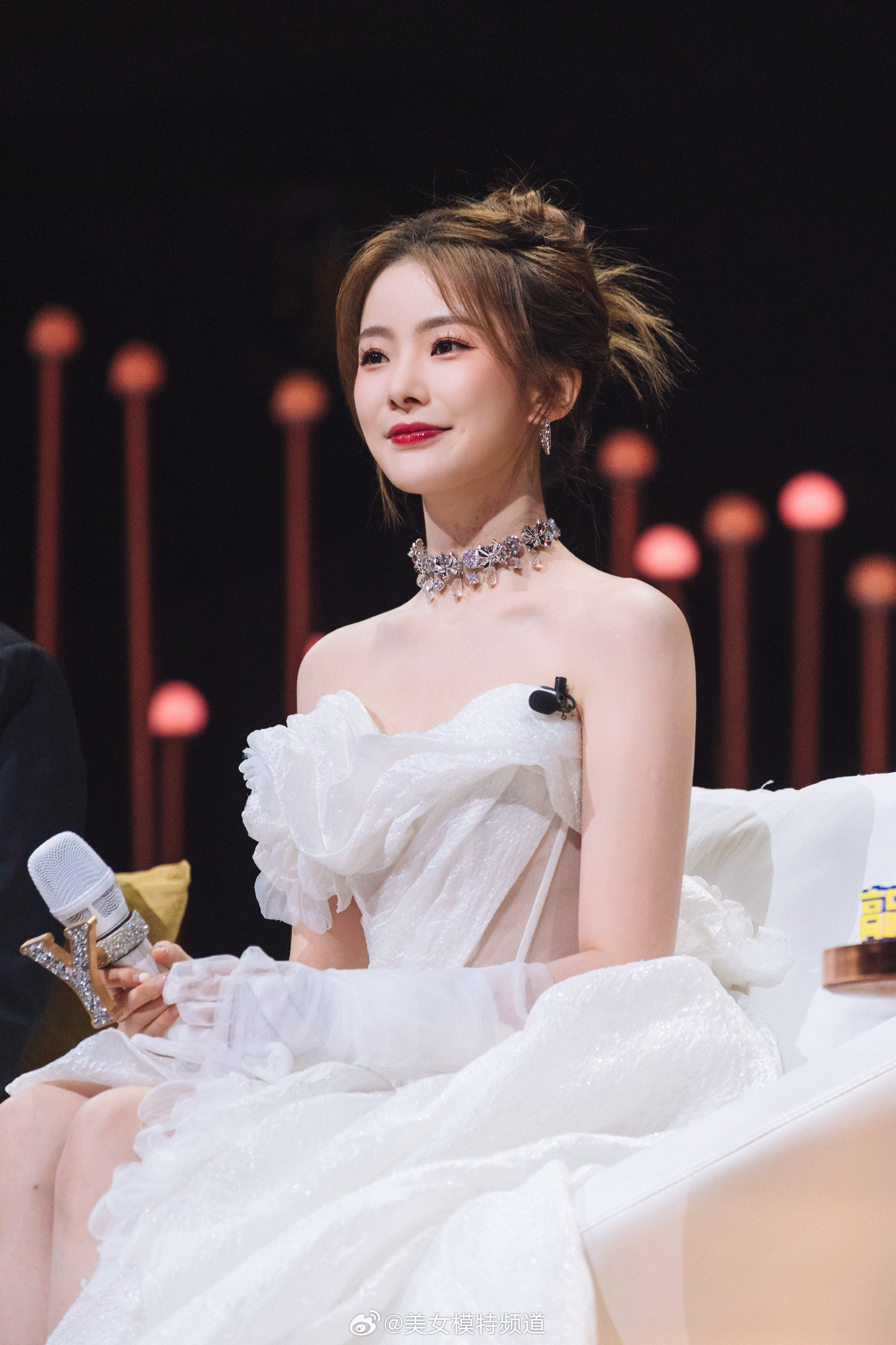 吴宣仪,玫瑰色彩抹胸裙装,自信浪漫。吴宣仪