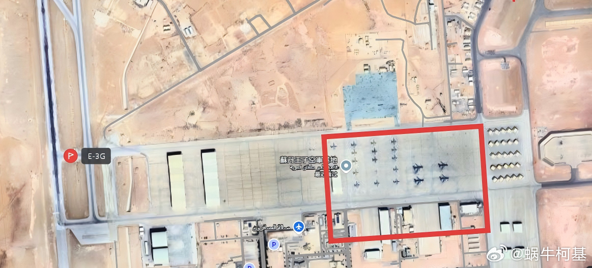 看这张卫星图对比下昨天KC-135R和E-3G位置就知道。这架E-3G(81-0005)停在飞行线靠近跑道头的位置,明显是准备起飞或紧急疏散的阵位。正常E-3G满编时,飞行机组4人(机长+驾驶+领航+工程师),任务机组13-19人(战术主任、飞机分配员、武器控制员、监视操作员、通信操作员和雷达技术员等),大规模协同作战时整架飞机上通常有20-25人左右。