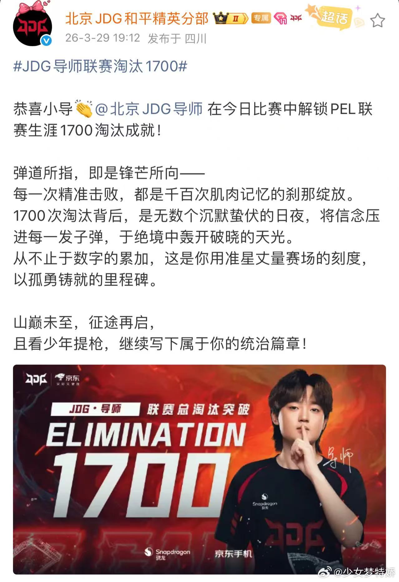 1700淘汰里程碑达成!JDG导师用一枪一弹书写传奇,PEL赛场永远有他的高光时刻,继续向前冲!