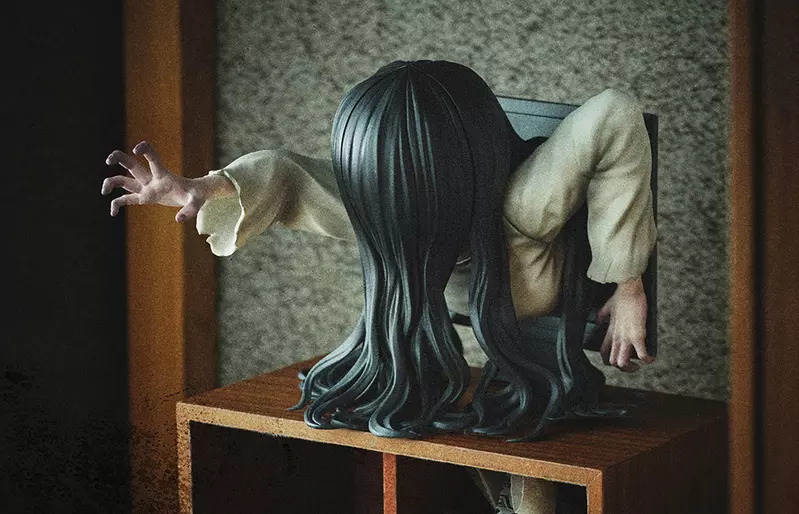 万代将于8月推出史上最损手办“爬出电视的贞子”!手办附带可拆卸的显示器造型配件,