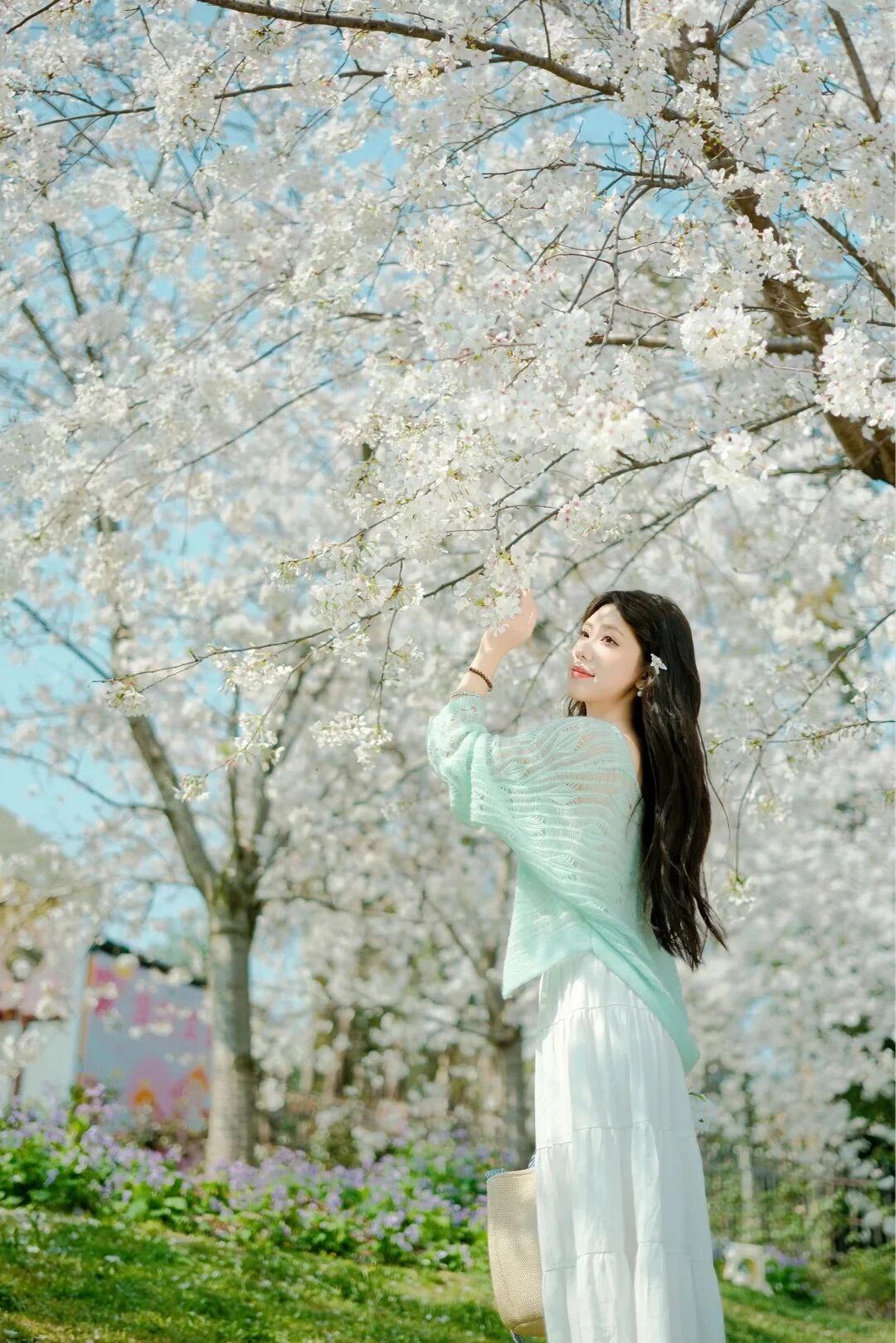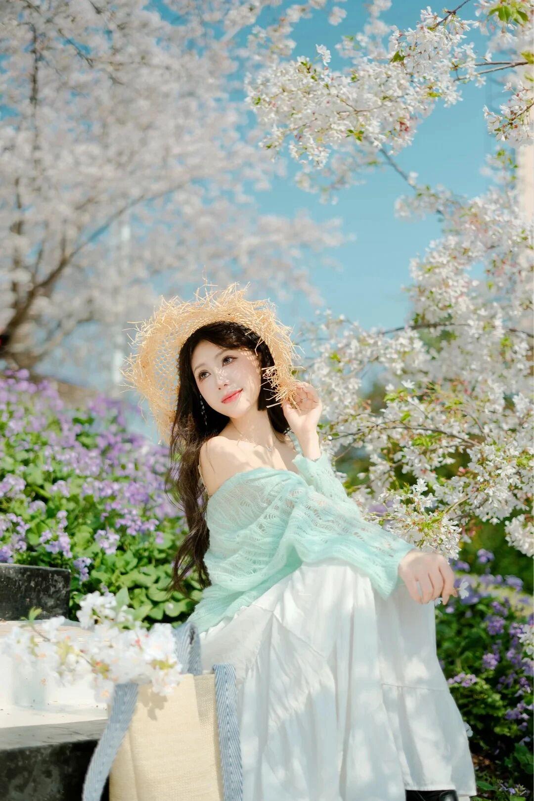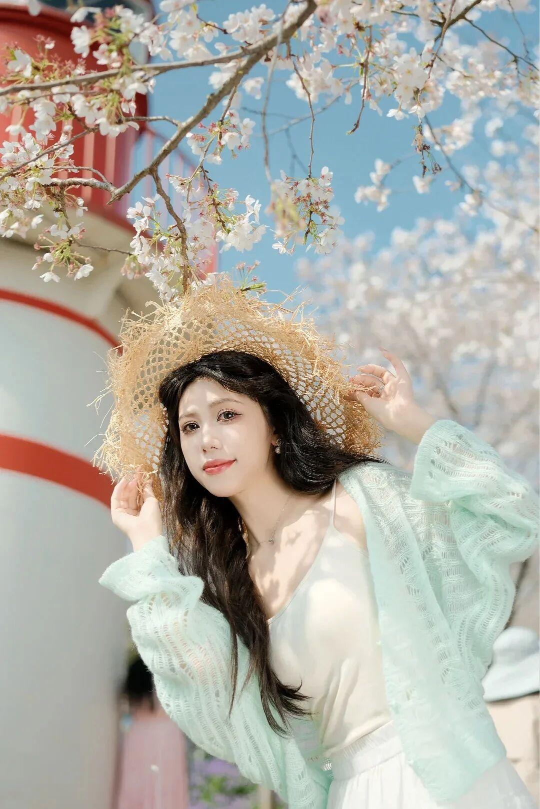 记录我的2026春日樱花树下,佳人一袭清新穿搭尽显温柔。浅薄荷绿镂空针织开衫搭配白色吊带长裙,轻盈飘逸,草编帽与发丝相映,增添几分慵懒随性。她或轻捻花枝,或抬眸浅笑,眉眼间满是温婉灵动,与漫天纷飞的樱花相融,宛如画中仙子,将春日的浪漫与柔美演绎得淋漓尽致。