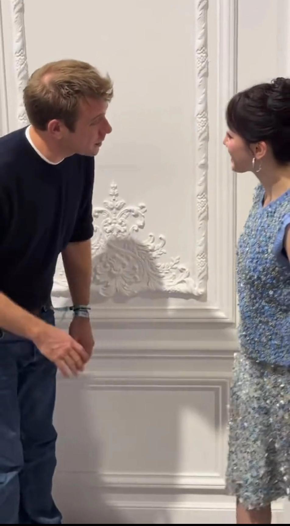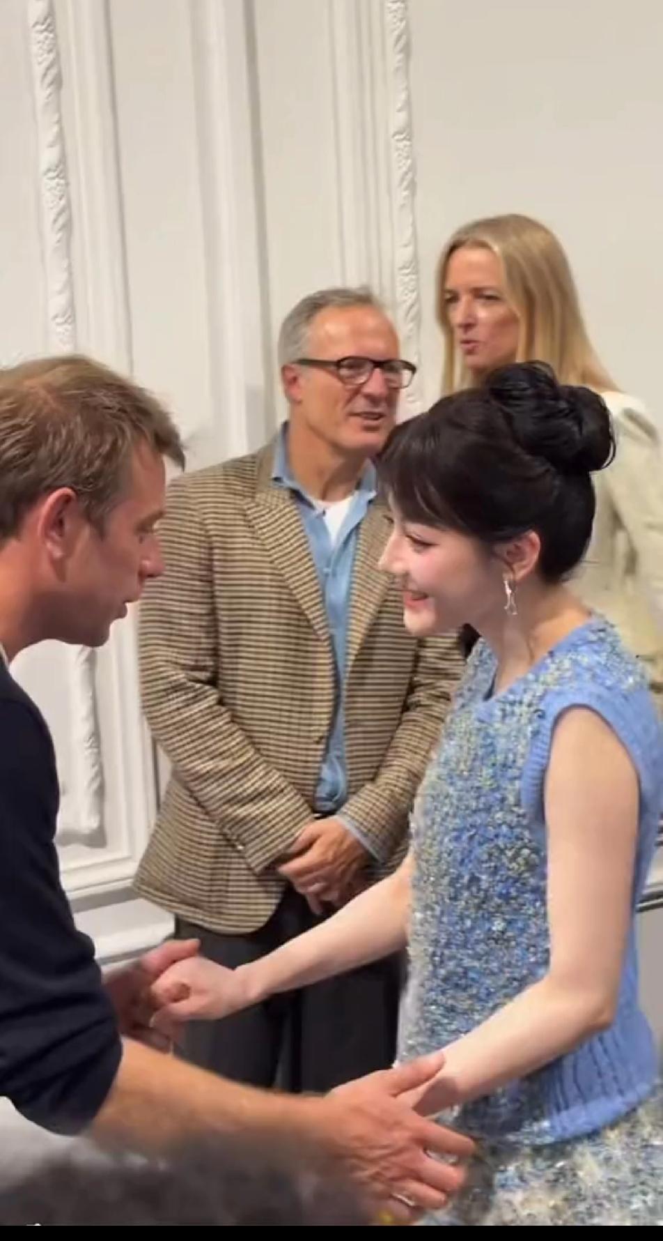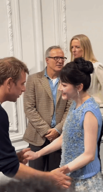 迪奥设计师对迪丽热巴和周也的态度差别好大,对着迪丽热巴热情洋溢,点头哈腰,对着周也例行公事,敷衍了事。先看迪奥设计师怎么对热巴的?离着老远就双手伸过去把热巴迎接到身前,然后手舞足蹈的夸奖赞美热巴的穿搭,拍完照后,又双手并拢弯腰对热巴表示感谢,整个过程完全get到了迪奥设计师对热巴的重视和热情,轮到周也时,设计师只是扶住周也的肩膀按程序拍照,多余的话一句不说,拍完照片后一手抄着裤兜微微欠身表示感谢……相比较设计师对热巴的态度,他对周也确实有点敷衍……