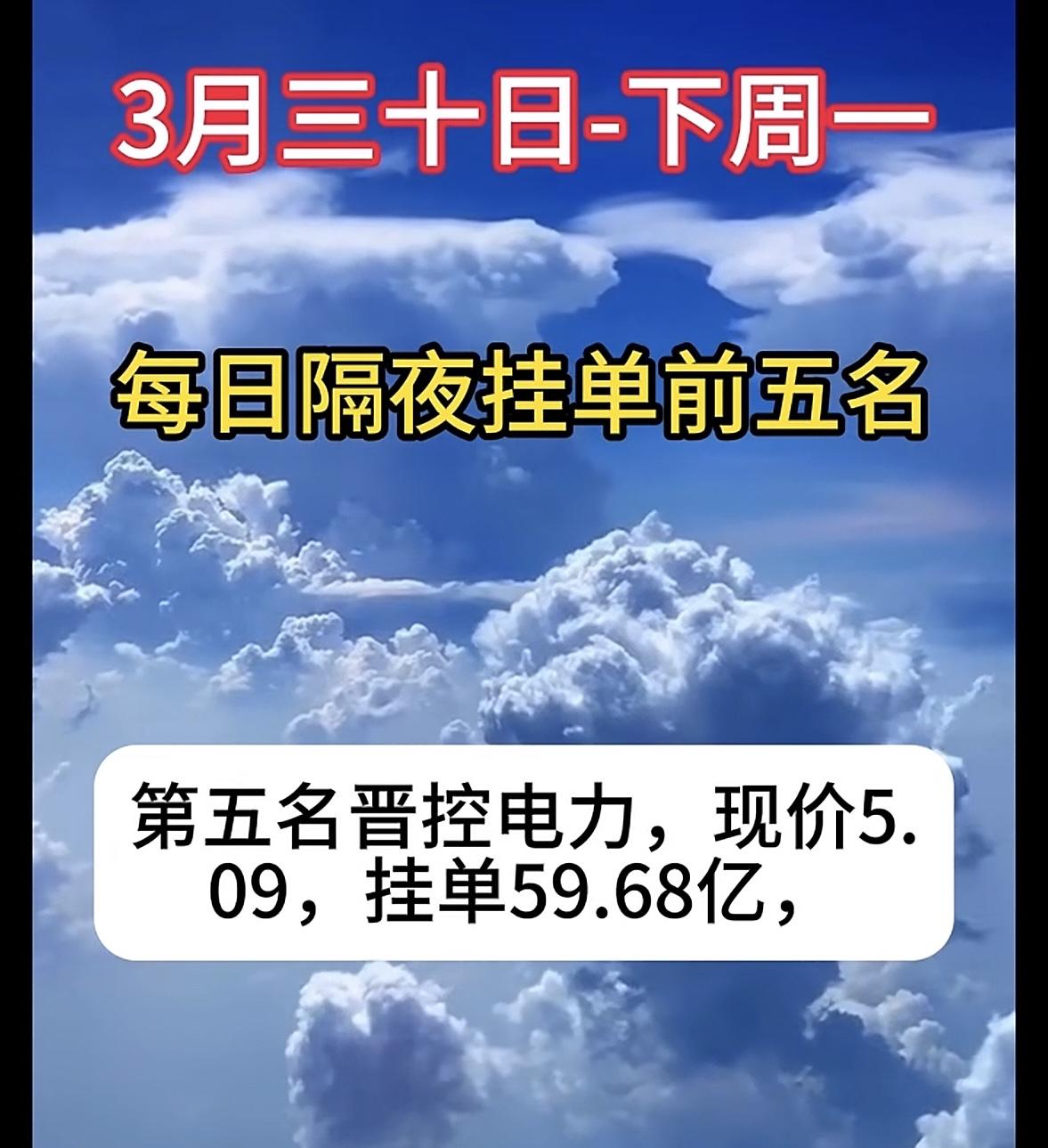 3月30日周一暗盘隔夜挂单排行榜揭晓 3月30日,晋控电力现价5.09元,还挂