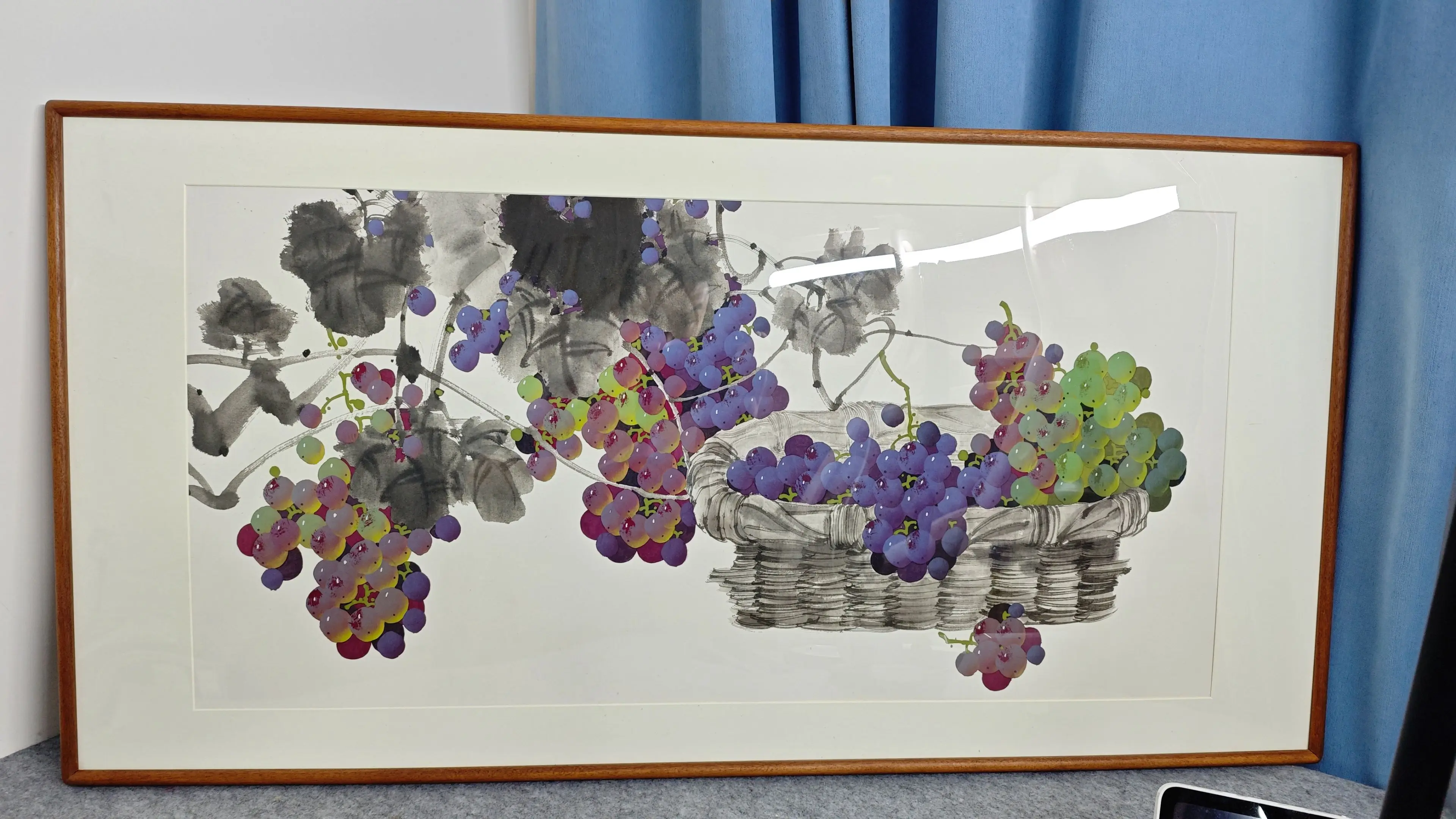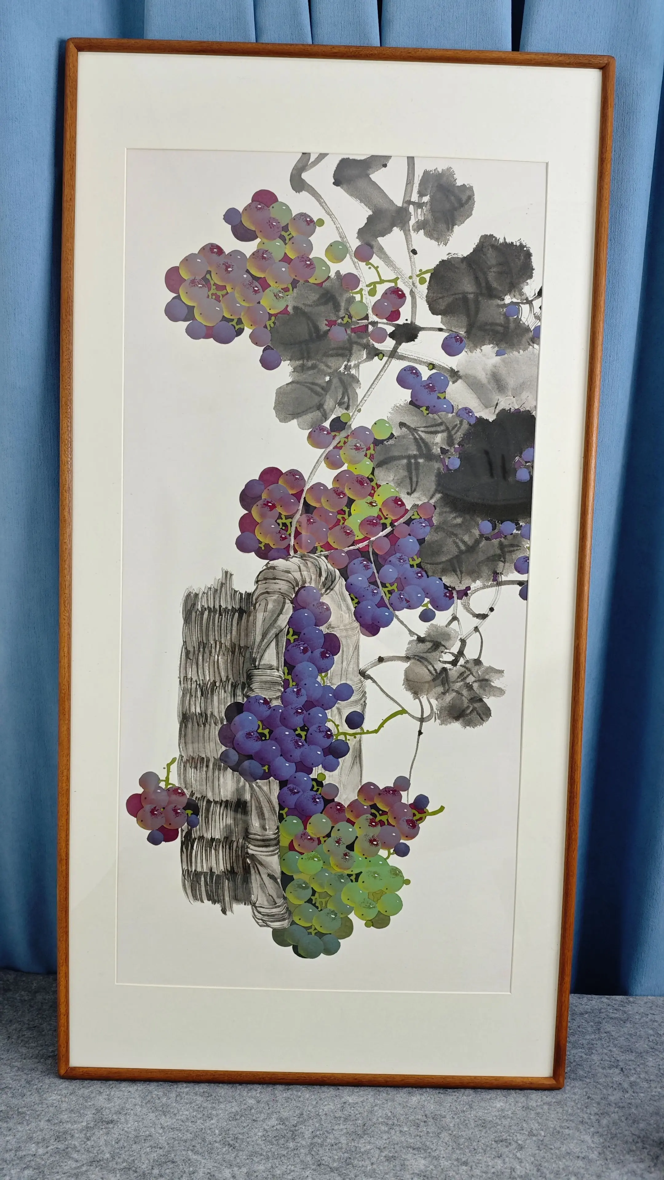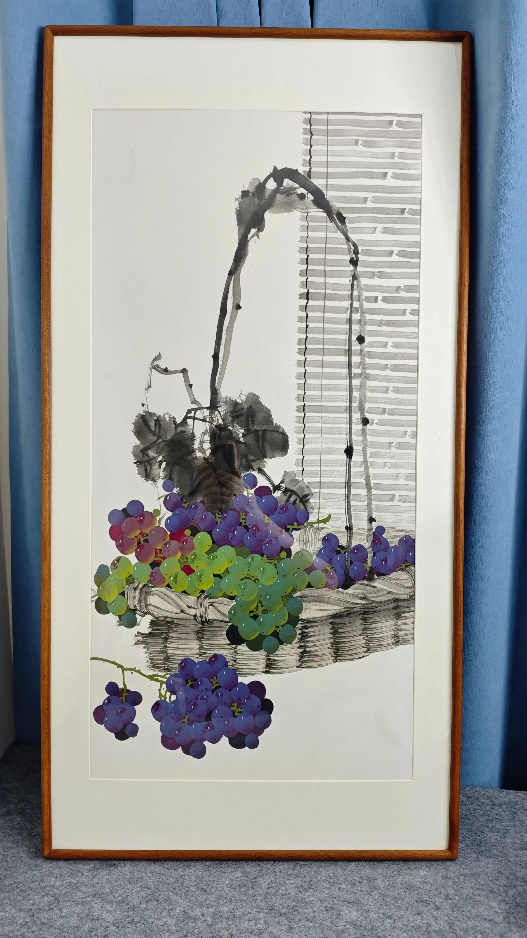 国画葡萄。 墨染明珠凝翠露,藤牵紫气入诗画。 所有作品都可结缘 !!!