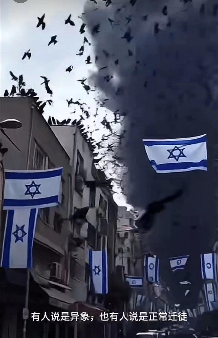 《雅群蔽日,美以乱象引慌恐》 你敢信吗?以色列的天空,又一次被黑色阴影彻底吞噬。 不是乌云压境,是亿万只乌鸦铺天盖地而来,像一场酝酿已久的黑色海啸,瞬间将城市、田野、远山全部裹进浓墨般的黑暗里。刺耳的嘶鸣划破天际,羽毛裹挟着风的寒意砸向地面——这场景,比末日电影里的特效还要惊悚。 有人说,这是亡灵的复仇。两年前就有预兆:一群乌鸦径直扑向以色列议会大楼,硬生生衔走半空中飘扬的国旗,任那面蓝白旗帜在众目睽睽下飘落尘埃。当时就有老人颤巍巍叹:“天要收了。”如今鸦群卷土重来,规模更盛,难不成真的是亡国之兆? 视线转向美国,同样是一片狼藉。900万人、3100次罢工,示威游行的浪潮像火山喷发般席卷全国。“不要国王”的吼声震得白宫窗户发颤,民众把抗议标语举到特朗普面前,直指他和内塔尼亚胡的双手沾满鲜血——对伊朗的侵略、无休止的战争,早已让这对盟友成了国际社会的众矢之的。 科学解释轻飘飘:以色列在候鸟迁徙路线上,鸦群只是路过。可谁能忽略这巧合背后的寒意?当曾经的“上帝选民”被鸟群封锁天空,当自许“山巅之城”的美国被内乱撕裂,连风里都带着一股不祥的味道。 有人说,这是大自然的警告,是被伤害的生命在以另一种方式呐喊;有人说,这是民众的愤怒化作了鸦群,要撕碎那些漠视生命的霸权。 此刻的美以,像两个站在悬崖边的人,一边是遮天蔽日的乌鸦,一边是汹涌抗议的人群。是偶然的自然现象,还是命运的审判?或许答案早已写在风中,只等那最后一片羽毛落下,便会揭开所有真相。而我们,只能屏住呼吸,看这场黑色风暴,将把世界卷向何处。