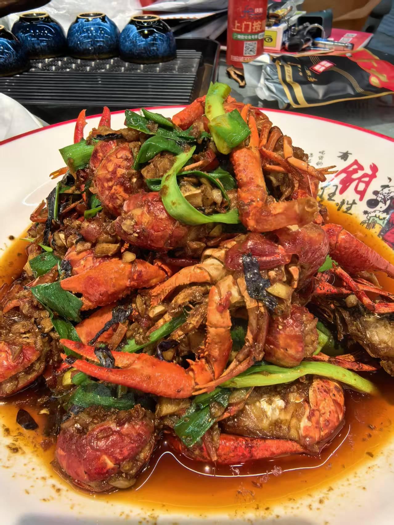 “虾蟹一锅鲜”,这道菜堪称经典款的镇店之宝,也被称为“虾兵蟹将”,是融合湘菜重口味特色的海鲜硬菜,以新鲜梭子蟹和大虾为主料,搭配紫苏酱或豆瓣酱焖炒,香气扑鼻、辣而不燥,深受本地食客喜爱 。