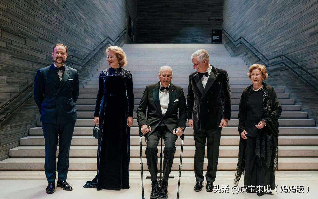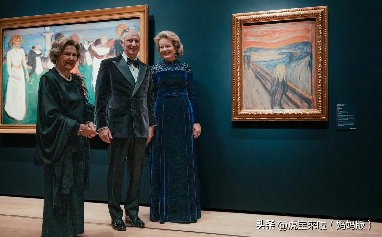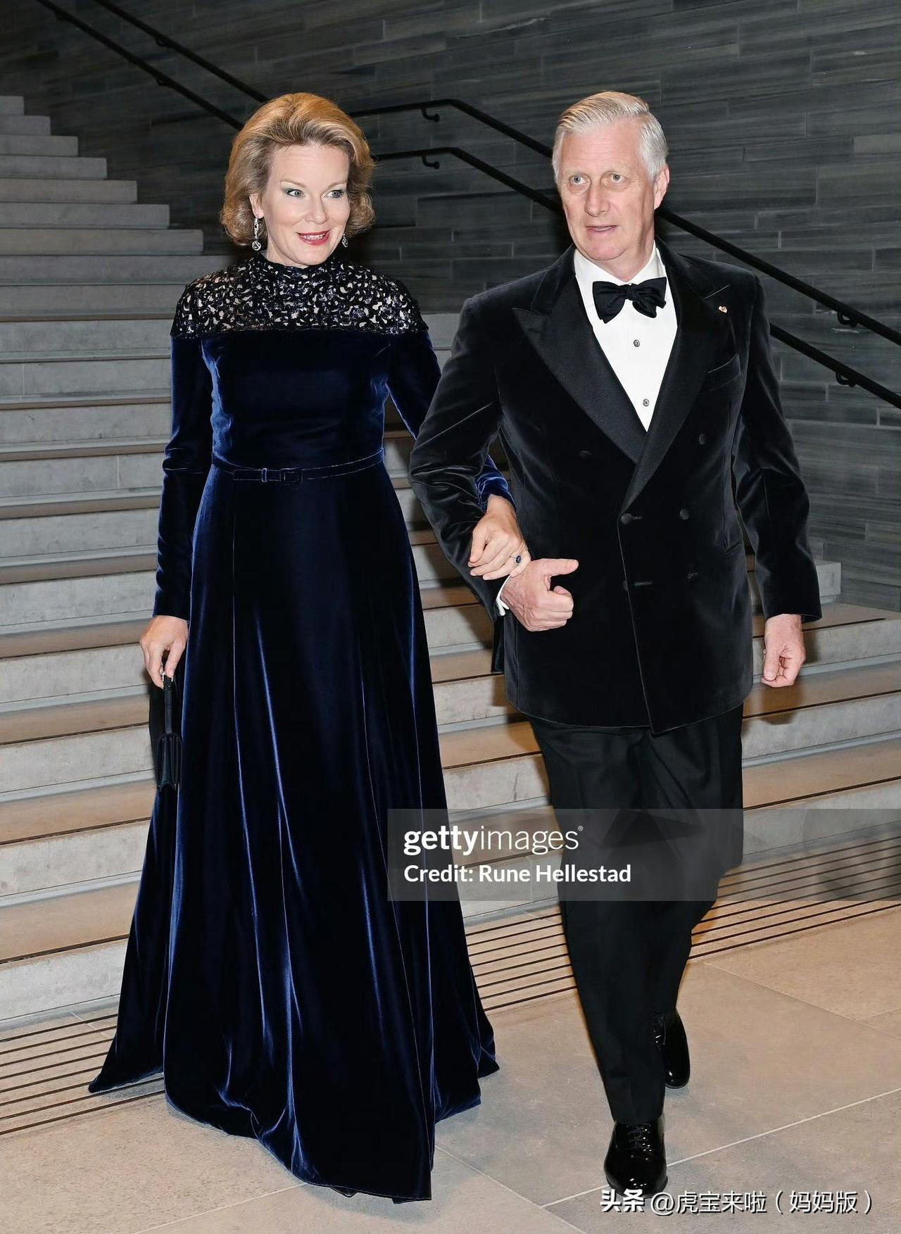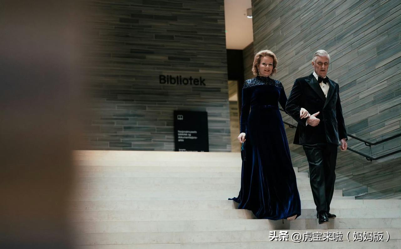 插播一条国王夫妇访问挪威第二天的画面,国王夫妇回请挪威国王夫妇出席音乐会,会前双方还去展厅参观!马蒂尔德王后挽着丈夫的手,身穿蓝色丝绒长裙,优雅大方!