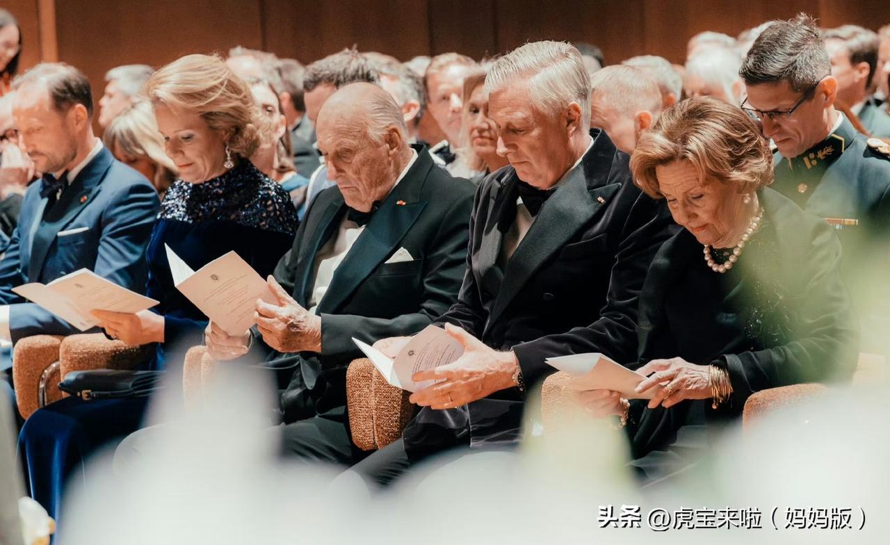 插播一条国王夫妇访问挪威第二天的画面,国王夫妇回请挪威国王夫妇出席音乐会,会前双