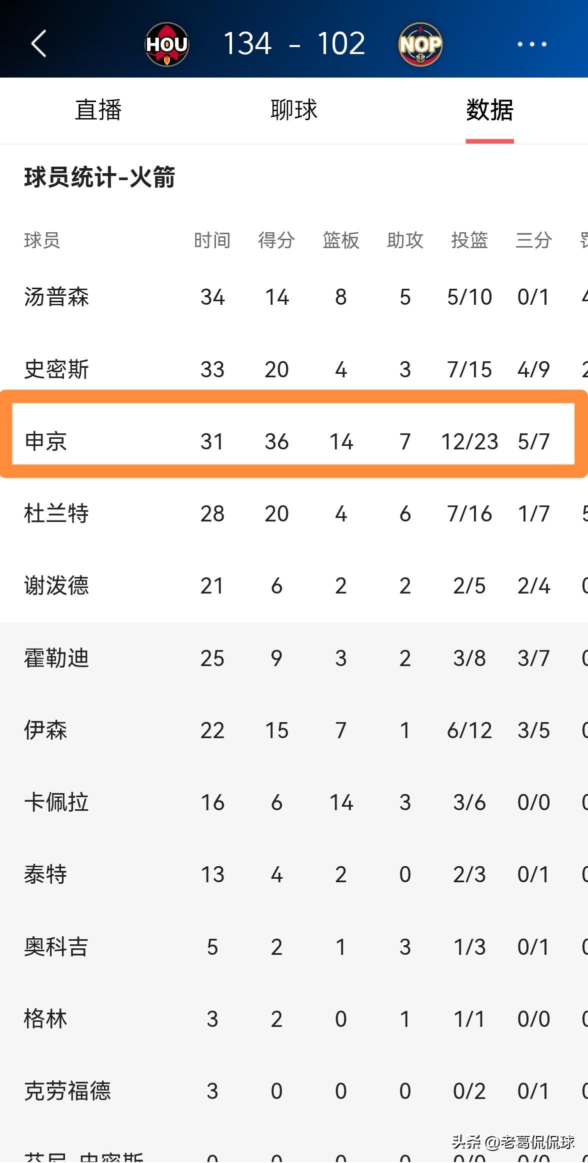 火箭官方实在是太懂人情世故了!在今天火箭客场以134:102轻取鹈鹕的赛后,火箭官方第一时间更新社媒,晒出了当家中锋申京本场比赛的数据海报,并写道:“申京在新奥尔良打出了野兽般的表现。”