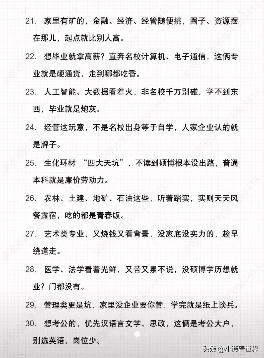 他还说家里没矿别谈理想,学习是老实人家孩子唯一的出路。想毕业就拿高薪?直奔名校计算机、电子通信,这俩专业就是硬通货,走到哪都吃香。