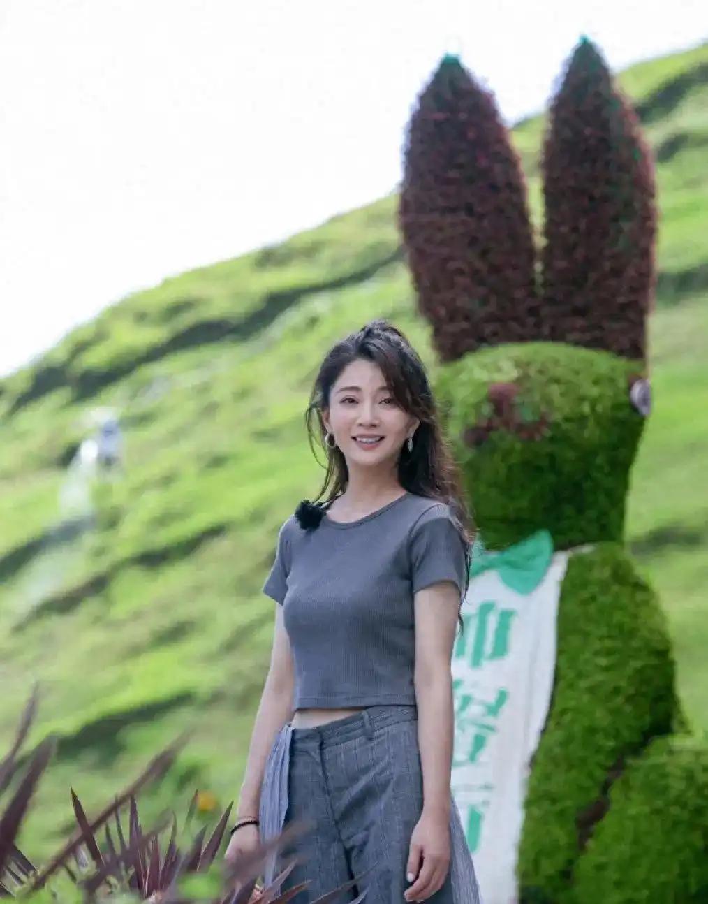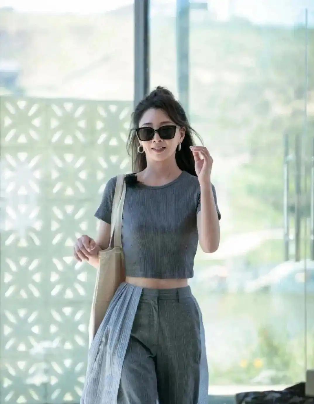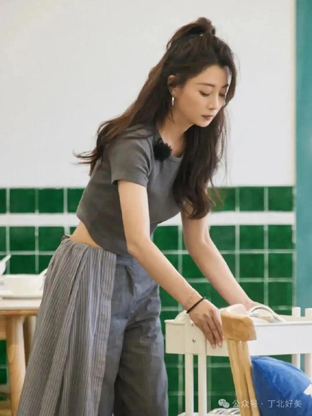 45岁殷桃带火“高级灰”穿搭:T恤 阔腿裤 半扎发,3个技巧让中年女人年轻10岁