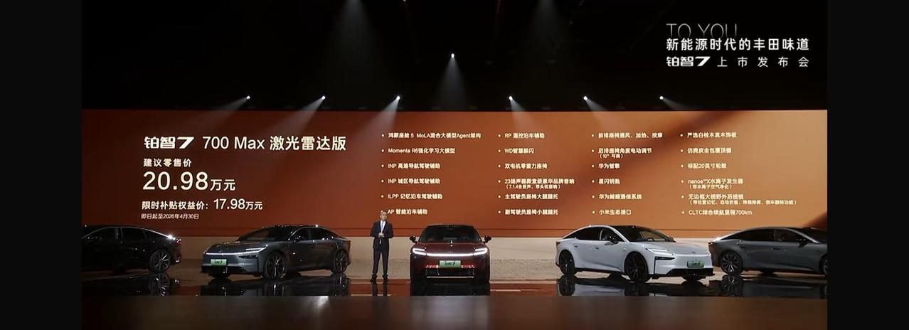 丰田铂智7发售价来了!限时补贴后14.78万起,续航最高710km,通勤自驾无压力。智能配置拉满,鸿蒙座舱+高阶智驾,豪华感也够,音响、座椅功能都很到位,颜值也戳人。15-20万想买纯电轿跑的,这波可以闭眼入,补贴到4.30,快去试驾!