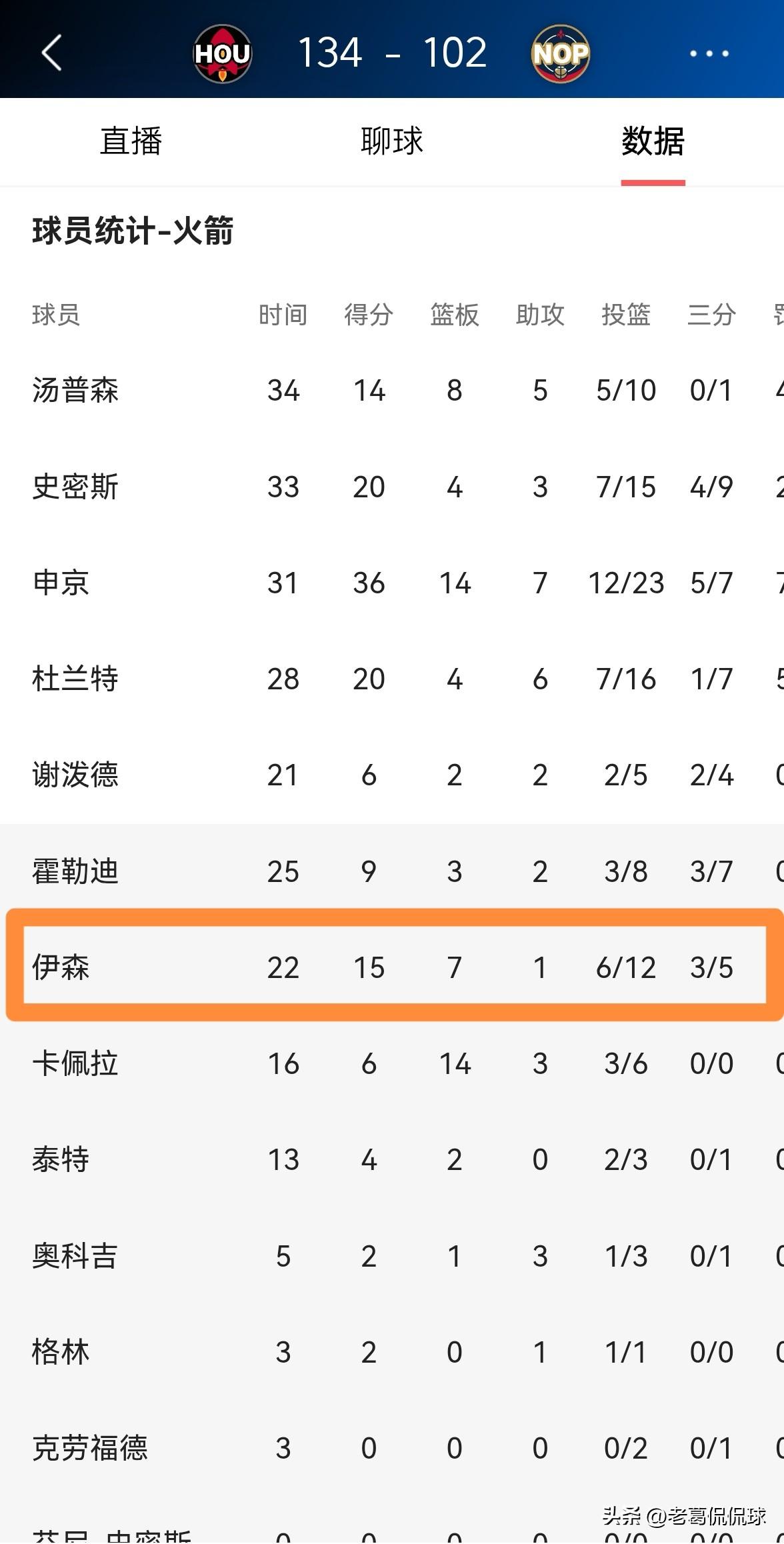 火箭主帅乌度卡真是太会夸人了!在今天火箭客场以134:102轻取鹈鹕的赛后采访中,乌度卡教练好好的称赞了一下爱将伊森的表现。 乌度卡教练这样说道:“我觉得伊森正在回到自己最擅长的打球方式,而不是仅仅依赖进球来影响比赛,他能够在切入、空切、拼抢进攻篮板和抢断来影响比赛。” 实事求是的说,本场比赛伊森的表现确实值得称赞,他在攻防两端都打出了最近一段时期的最佳表现。