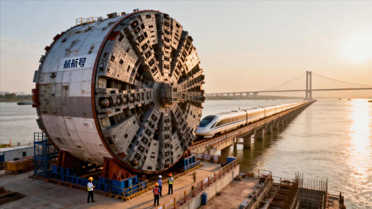 基建狂魔再次封神!中国“领航号”江底狂挖11公里,老外看呆:这是科幻照进现实!2026年3月29日,中国基建再封神!自主研制的世界最大直径高铁盾构机“领航号”,圆满完成长江水下11.18公里掘进壮举,直接创下15米级盾构连续掘进世界纪录,把“在江底开高铁”的科幻场景,硬生生变成了中国现实! 这台“国之重器”有多猛?刀盘直径15.4米,比5层楼还高;整机长148米,相当于4列高铁车厢;总重4000吨,堪比600头成年大象,搭载智能“超级大脑”,实现“有人值守、无人操作”的精准掘进,在89米深的江底,顶着超深水压穿越复杂地层,全程零失误。 最震撼的是,它让350公里时速高铁穿江不减速,打破全球水下隧道行车速度纪录!应用于崇太长江隧道的它,不仅攻克了高水压、富水含沼气等多重难题,更以“浆不落地、渣不落地”的绿色施工,守护崇明生态岛,硬核实力拉满。 网友狂呼:“江底飞驰350,比科幻片还震撼!”这不是炫技,是中国基建从“跟跑”到“领跑”的底气——曾经我们要花7亿从国外买盾构机,如今自主研制的“领航号”,为全球水下隧道建设树立新标杆,狠狠打破国外技术垄断。 热议背后,是期待更是底气:有人关心票价是否会因工程成本上涨,更有人盼着2029年通车后,长三角交通格局改写,崇明到上海宝山最快17分钟,区域经济联动再提速,人流、物流、资金流高效互通。 所谓“基建狂魔”,从来不是盲目堆砌,而是攻坚克难的智慧与坚守。“领航号”挖通的不只是江底隧道,更是中国制造业的崛起之路,是民族复兴的底气之路。厉害了我的国,每一次突破,都在刷新世界对中国的认知!