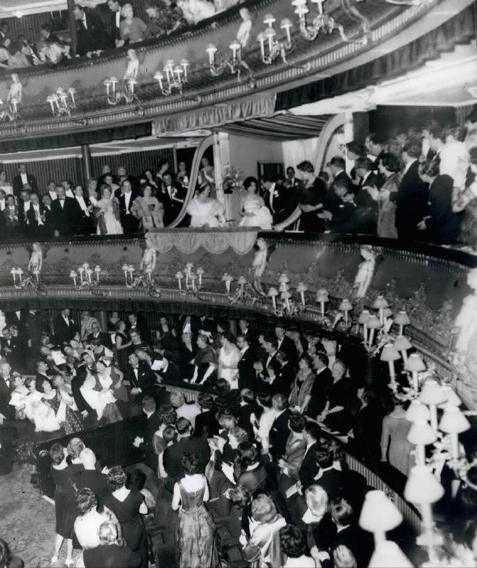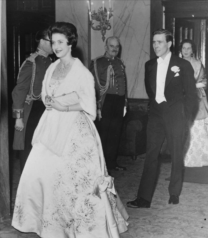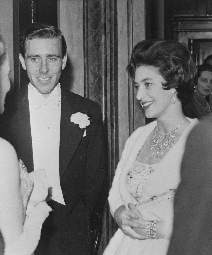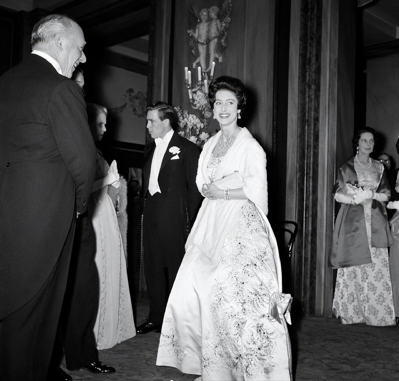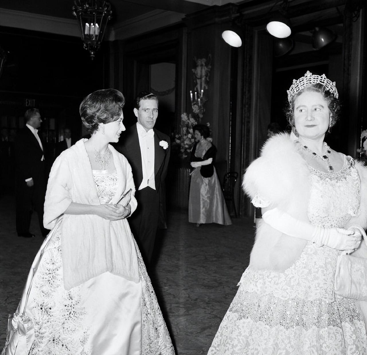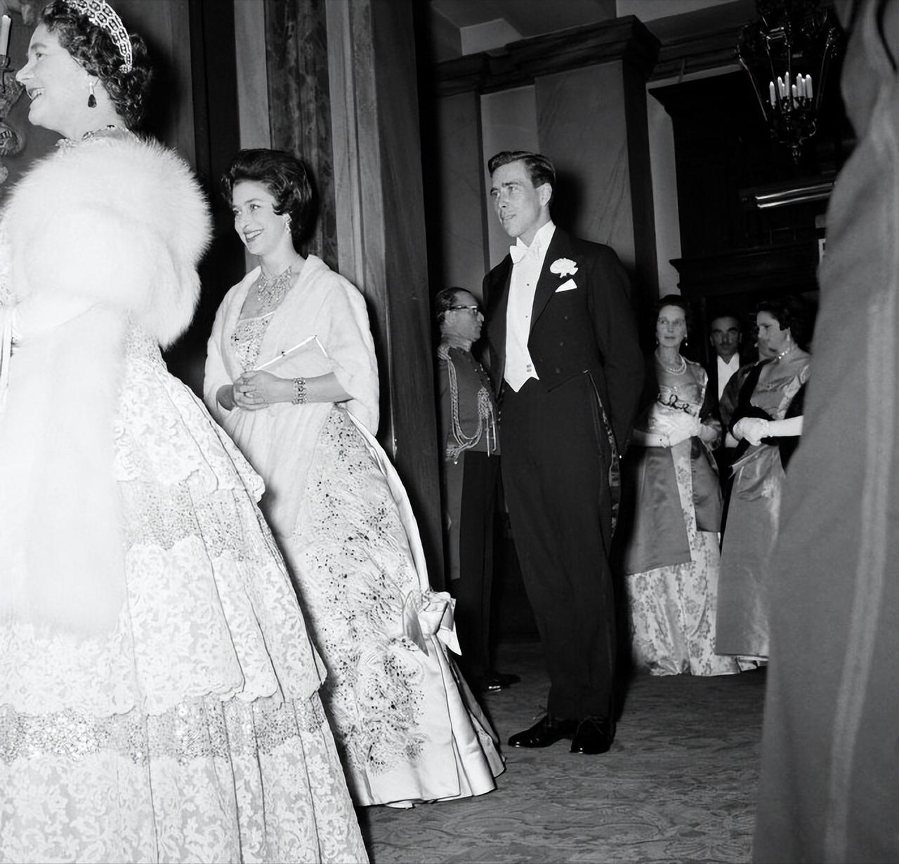 1960年3月1日,伊丽莎白王太后带着女儿玛格丽特公主以及准女婿Antony Armstrong-Jones在伦敦考文特花园皇家歌剧院观看芭蕾舞演出。 玛格丽特公主在订婚前曾爱上了一位年轻的军官,可是两人却因为王室种种原因,并没有在一起。 在那儿之后,玛格丽特公主选择了一位皇家摄影师作为自己的夫婿。 爱情也许就是如此,既然不能选择自己心目中的白月光,那就只能将就了吧? 年轻的玛格丽特公主真不愧是那个时代最美的英伦玫瑰,穿着华服,即便不戴王冠,也贵气时尚。 而且对比姐姐伊丽莎白女王的优雅和端庄,妹妹玛格丽特公主更带着些不羁的随性之美。 玛格丽特公主和未婚夫陪着伊丽莎白王太后看演出,两人虽然还未正式结为夫妻,但是颜值看起来却已经颇有几分夫妻相的既视感。