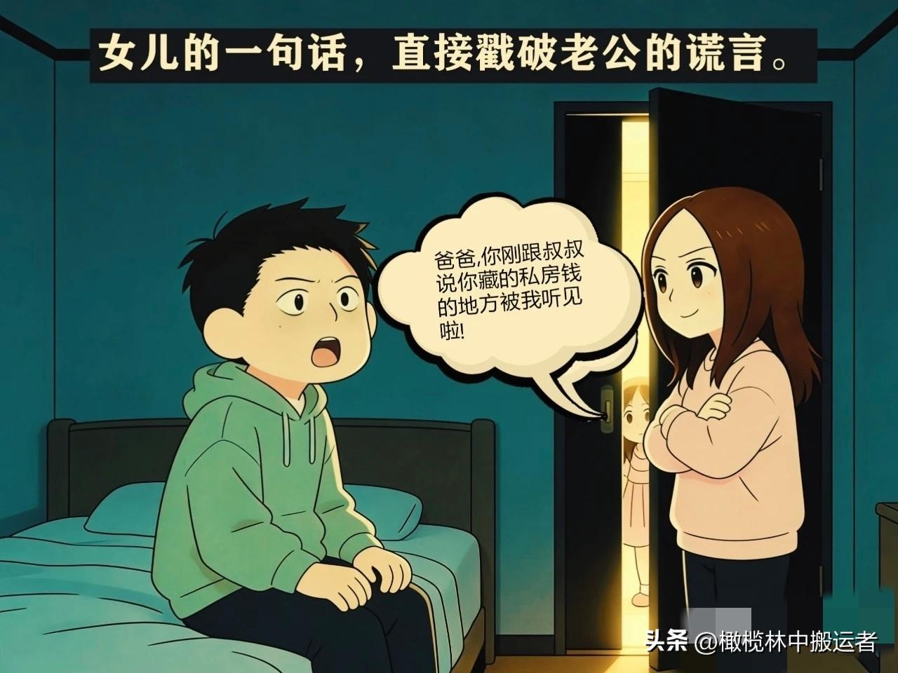 趣味漫画:老公深夜躲被窝玩手机,被老婆当场抓包:干嘛呢?老公:没...没干啥。女儿:爸爸,你说藏私房钱的地方被我听到了!搞笑漫画大赏 夫妻日常漫画