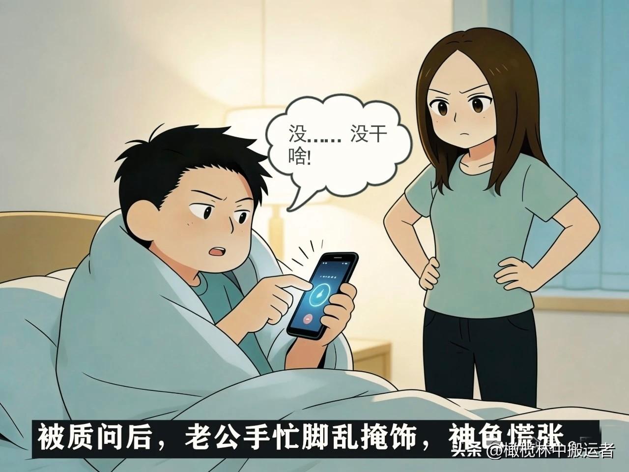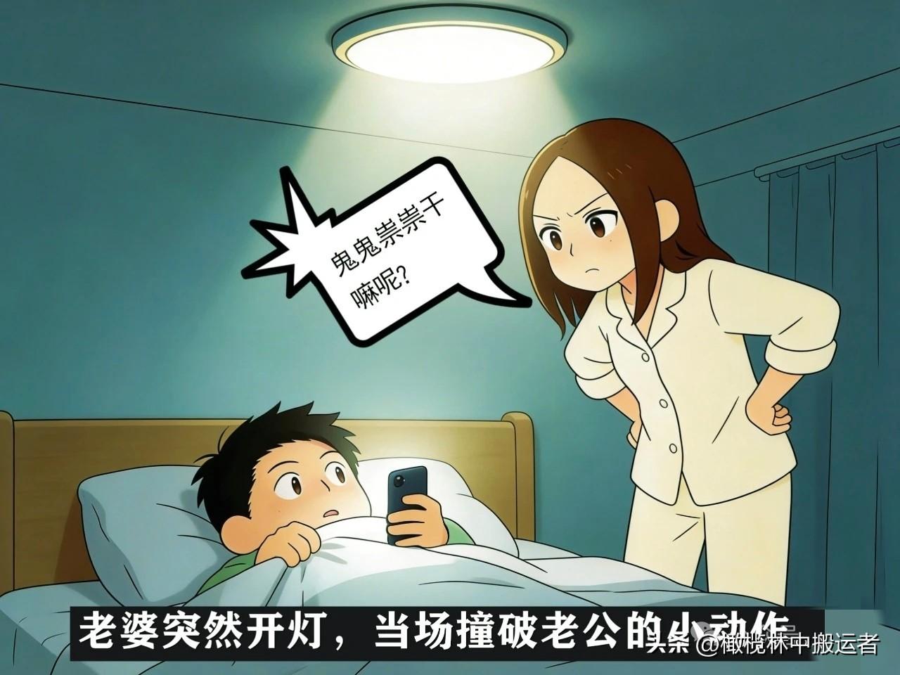 趣味漫画:老公深夜躲被窝玩手机,被老婆当场抓包:干嘛呢?老公:没...没干啥。女