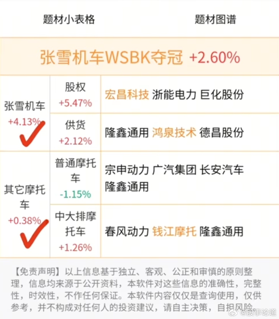 题材梳理张雪机车w s b k夺冠共分为两大核心,张雪机车以及其他摩托车。张雪机车包括股权以及供货股权: