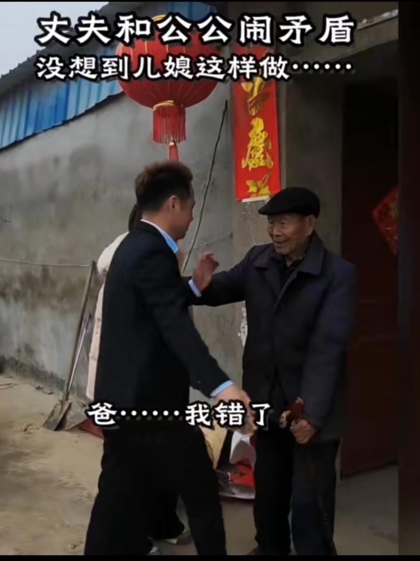 都说养一个好儿子,不如娶一个好儿媳!这位公公有福就娶了这样一个好儿媳妇,肯定旺三代啊! 一天,丈夫和公公闹矛盾,儿媳知道后,拿木棒打着丈夫,并押到公公门前,夫妻双双跪地向老父亲认罪。面对此情此景,公公心里的气早消了,他把儿媳妇和儿子拉起来,儿子主动认错,请求父亲原谅,父子俩紧紧抱在一起!和好如初!视频看了让人泪目,都说好媳妇旺三代。家里有这么一个明事理,有孝心的好媳妇,何止旺三代啊!为她点赞! 截图来自头条视频,侵权请联系删除!