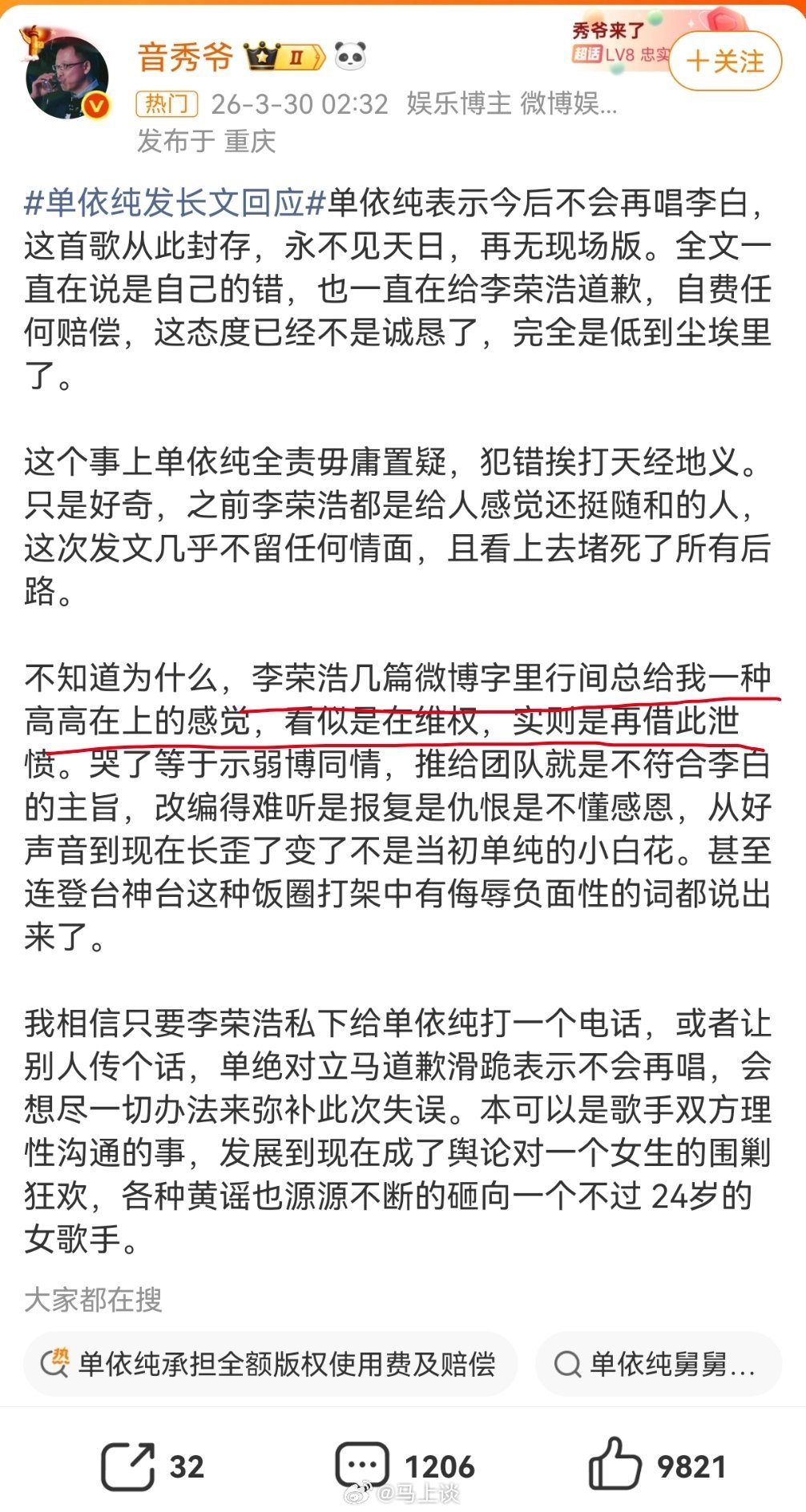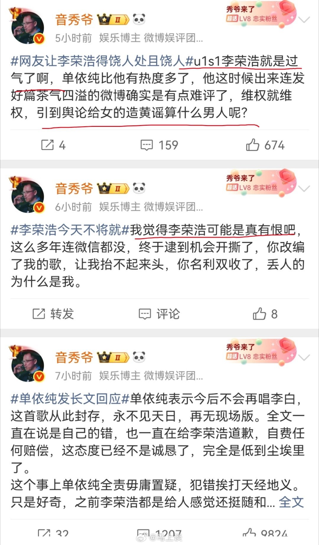 什么?李荣浩过气了?!什么?引导舆论给单依纯造黄谣?!什么?女歌手也不容易?强行侵权啊大哥