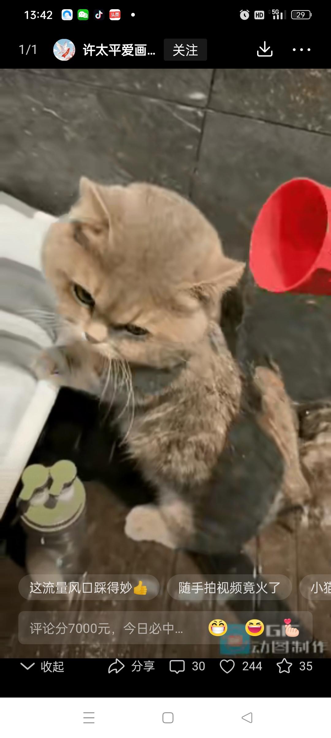 泼天的富贵!广东广州一位95后姑娘阿雯,本来就是随手拍了段给自家猫洗澡的日常,发