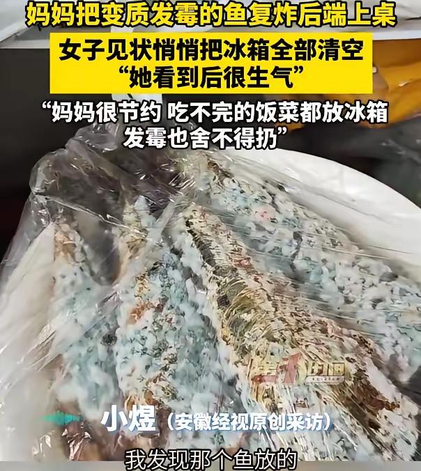 四川,女子发现冰箱里鱼放的都发霉了,母亲直接复炸后端上桌,为了安全起见,女子静悄悄的把冰箱全给收拾了一遍,该扔的都扔掉,可母亲得知后却气的不行,这让女子相当苦恼。网友:我家里也这样 推开家门那刻,油烟味夹着若有若无的霉味直冲脑门。小煜心里咯噔一下:准没好事。 步入厨房,映入眼帘的是母亲正将一盘炸至金黄的鱼端放于桌。那鱼身泛着诱人光泽,油珠仍在“滋滋”作响,似在诉说着美味的秘密。 她轻轻凑近,定睛一看,鱼皮的褶子里,竟残留着青绿色的霉斑。那霉斑肆意蔓延,恰似一撮未经梳理、杂乱无章的乱发,触目惊心。小煜的火腾地就上来了,硬是咬牙没吭声。 “妈,这鱼放了多久?”“也就半个月吧。长了点毛,高温炸一下啥菌都没了。”母亲随手擦擦手,一脸淡定,“以前不都这么过来的?” 小煜伫立原地,胸腔似被重石填满,烦闷与压抑如潮水般涌来,堵得他心口生疼,每一次呼吸都似有千斤重。 她知道母亲这辈子苦过来的,节俭惯了,剩菜剩饭从来舍不得倒,变味了也得热热吃。可现在时代变了啊,发霉的东西里全是黄曲霉素,那玩意儿油炸根本杀不死,吃多了伤肝还致癌。老妈岁数大了,免疫力本来就差,万一吃出个好歹,那省下的仨瓜俩枣哪够看病钱? 她没敢当面硬顶,怕伤了老太太自尊,让她觉得自己没用。 趁母亲拎着篮子去逛早市,她搬来凳子,把冰箱门一拉,开始地毯式大扫除。 冷藏室里,放了三天的青菜烂出水了,剩汤上面漂着厚油花,还有几个长毛的馒头捂在袋子里。 冷冻室更吓人除了那盘霉鱼,还有几块包装都破了、冻了大半年的陈年老肉。 小煜二话不说,通通打包扔进垃圾袋,连受潮结块的面粉也没留。冰箱瞬间空出一大半,只剩下几瓶调料和新鲜鸡蛋,看着清爽多了。 结果母亲回来一看,脸色立马撂下来了。她死死盯着空架子,冲着小煜直打哆嗦:“你把我东西都扔了?那些还能吃,鱼都炸好了,你怎么这么败家!” 说着说着眼眶就红了,坐沙发上直抹泪,又开始翻旧账:“以前穷的时候,一粒米都得省着吃,现在日子好了,你倒开始糟蹋东西了?” 小煜轻步走过去,在母亲身旁坐下,缓缓牵起母亲的手,神情认真,再三向母亲讲述发霉食物潜藏的巨大危害。 可母亲还是摇头,觉得年轻人瞎讲究,老一辈人以前不也这么活过来的? 这事儿往网上一发,评论区瞬间炸出一堆“同款爹妈”。有人扔过期牛奶被骂哭,有人老爸吃半年腊肉怎么劝都不听。 众人不禁感慨,此非一家之困,实乃两代观念龃龉之象。新旧观念似在无形战场激烈“厮杀”,冲突尽显。 坦率而言,在老人的认知里,“冰箱乃保险箱,高温可灭万菌”的观念,已然根深蒂固,宛如焊接于脑海之中,难以轻易撼动。 对他们来说,扔掉的不是鱼,而是对未来“万一没得吃”的强烈不安全感。 现在的冰箱,很多人早就塞成了“冷库”。东西胡乱堆,空气都不循环。 烂菜叶子藏在角落,剩菜剩饭一放就是一周。你以为低温能叫停时间,其实细菌只是在那儿“慢动作”生长,根本没停。 最要命的是,高温真不是万能的。发霉产生的黄曲霉毒素毒性极强,油炸那点温度根本奈何不了它。 吃了不一定马上闹肚子,但长期吃,肝脏真的在“记账”。邻居大爷吃剩菜住院,花了一大笔钱的事,小煜记得清清楚楚。这真不是年轻人瞎讲究,这是实打实的科学! 后来小煜学聪明了,不吵不闹。每天买新鲜菜把冰箱塞满,还经常给母亲刷这类科普视频。 慢慢地,老太太嘴上还唠叨,但再也不敢把霉变食物往桌上摆了,偶尔还会问问:“这菜是不是该处理了?” 节俭是美德,但不能拿健康去赌。两代人相处,硬碰硬没用。得用温柔的方式让长辈明白:比起省钱,我们更在意你的健康。 你家有没有同款老人?评论区聊聊你们的“斗争经验”。