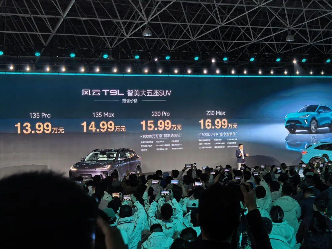 13.99万起,2000km续航中型SUV奇瑞风云T9预售! 3月25日,奇瑞风云T9L正式开启预售,推出4款车型,预售价13.99-16.99万元。新车定位中型SUV,搭载鲲鹏超能混动CDM6.0,CLTC纯电续航最高230km,综合续航达2000km,配备猎鹰700+智驾系统及27颗传感器,支持城市/高速NOA双场景领航。其轴距2920mm,前排双零重力座椅带通风加热按摩功能,二排支持35度电动调节,还配备车载冷暖冰箱及23扬声器音响。奇瑞风云T9L预售