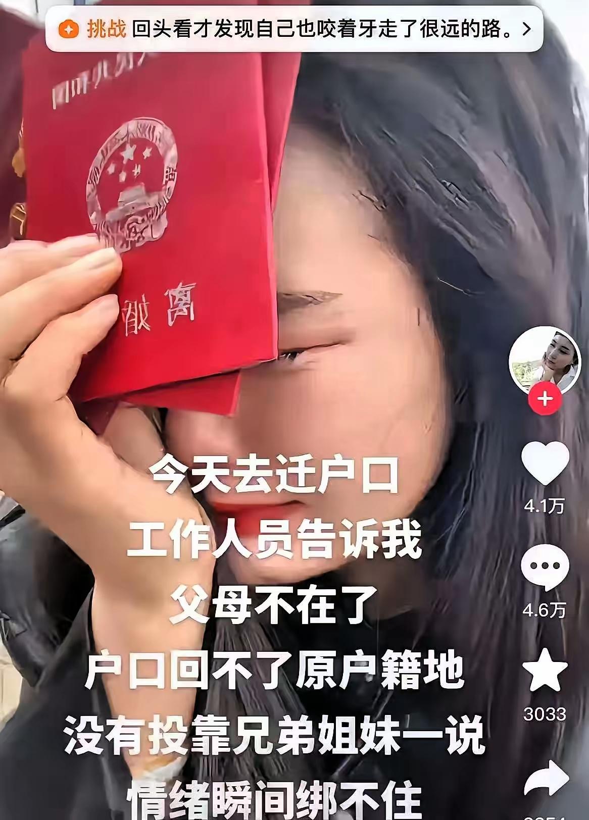 云南,女子离婚后,前夫要求她马上把户口迁出去。她没有争执,按要求去了派出所。民警告诉她:父母已经去世,户口无法迁回原籍;按政策,也不能直接投靠兄弟姐妹落户。 她当场崩溃,在户籍大厅哭了出来。一夜之间,她连一个挂户口的地方都没有了。 这一幕戳中了很多人的心。很多女性结婚时将户口迁到男方家,离婚时才发现,迁出去比迁进来难得多。没有独立住房,原籍回不去,兄弟姐妹不能投靠,连公共户政策都不一定能覆盖。一张户口本,卡住的不仅是户籍,还有社保、就业、日常办事,甚至最基本的生活安全感。 有网友说:夫妻一场,何必这样急迫。也有人提醒,离婚前应该提前规划户口去向,了解当地公共户、集体户政策。 婚姻关系可以解除,但基本的生活保障不该被剥夺。政策正在完善,但人情也该留一分。多一点体谅,少一点苛刻,或许就能避免很多无奈和心酸。