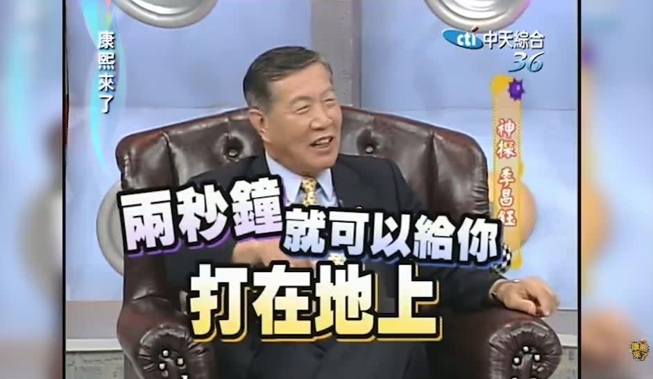 【小S说李昌钰是永远敬佩的长辈】当地时间3月27日,国际著名刑事鉴识专家李昌钰在美国去世。2006年,李昌钰曾在《康熙来了》接受小S、蔡康永专访,小S近日接受采访时回忆道,李昌钰是“一位有智慧又淘气的长辈”,自己非常崇拜对方的专业,“但访问博士后发现他非常可爱,当时在节目中示范如何制伏坏人,我和康永哥都被博士狠狠压制!那是一场让我难忘的访谈,也让我更喜爱李昌钰博士”,她认为李昌钰专业同时又很幽默、谦虚,是永远令她敬佩的长辈。2006年,李昌钰做客《康熙来了》,其睿智与风趣让许多网友记忆深刻。他说,自己不怕被罪犯报复,“2秒钟就可以给你打在地上”,还现场示范如何压制歹徒,小S与蔡康永分别演示从正面、背后攻击,结果小S“被殴打”,蔡康永“被肘击”,一连串动作快、准、狠。小S还问他如果怀疑老公外遇,要从哪里着手最容易抓到?李昌钰说,很容易,叫她老公来见他2分钟就可以告诉她结果。你对这些片段有印象吗?(台湾《NOWNEWS今日新闻》)
