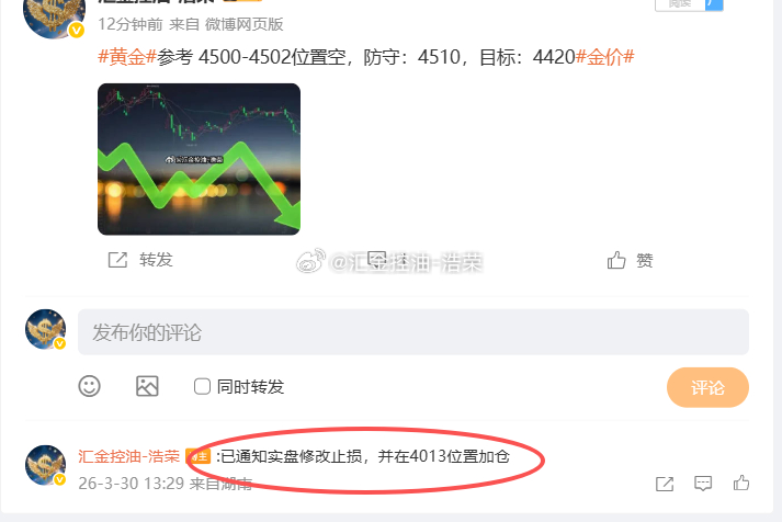 黄金4502位置空,4513位置加仓,现行情下跌至4503位置,空单双仓整体浮盈90个点,行情起落之间,机会与风险并存。保持耐心,保持定力,才是交易中最难得的本质。黄金金价