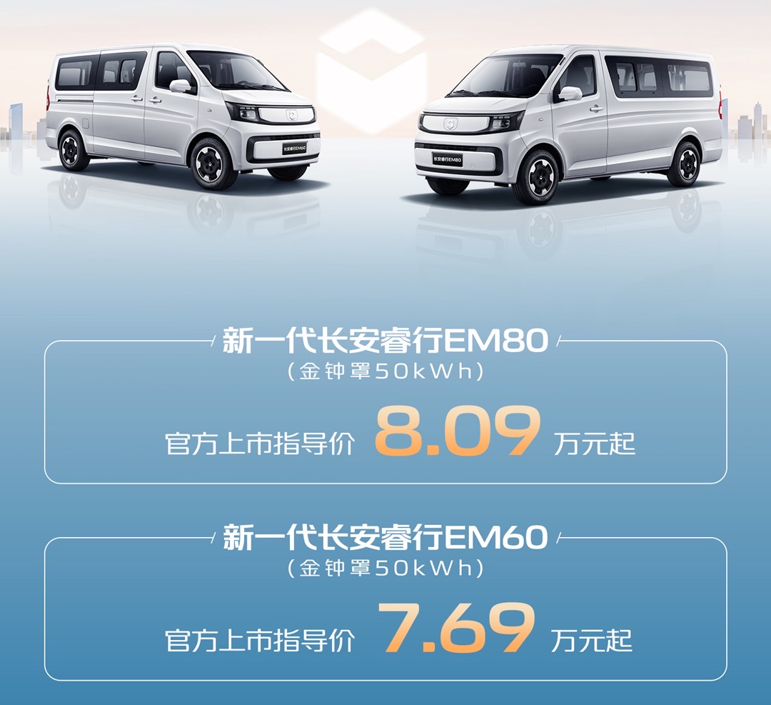 日前,新一代长安睿行EV(金钟罩50kWh)迎来上市,售价7.69万元起。 先看产品,新车换装了长安凯程全新数智立方标,让前脸的辨识度更高。内饰采用环抱式座舱,搭配三幅方向盘、怀挡、9寸大屏等设计,好看更好用。 空间上,新车采用了方正货箱设计,配合后轮1.23米超宽轮毂包间距,实现空间利用率最大化。同时,新车还提供了2/5/6/7座灵活多变的座椅布局,可在纯货用与客货自由切换。 重点来了,新一代长安睿行EV搭载的央企自研黄金三电系统,其中,金钟罩电池采用了宁德时代电芯,续航最高可达380公里(CLTC),百公里综合电耗低至13.8kWh,折合每公里成本只要1毛钱。此外,标配2C快充技术,常温环境下电量从30%充至80%仅需15分钟。 小结一下:上市至今,长安睿行累计销量超过31万辆。其中,长安睿行EV更是夺得2025年新能源微客销冠。如今,新车针对在续航、补能、空间及智能化体验上全面进阶,可以说精准解决了城配物流人用车痛点。接下来,期待新车的市场表现。