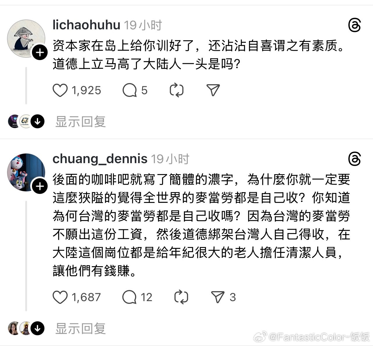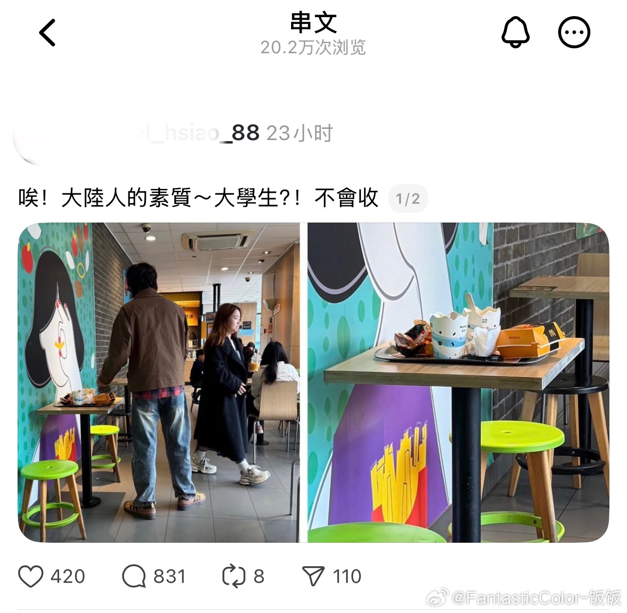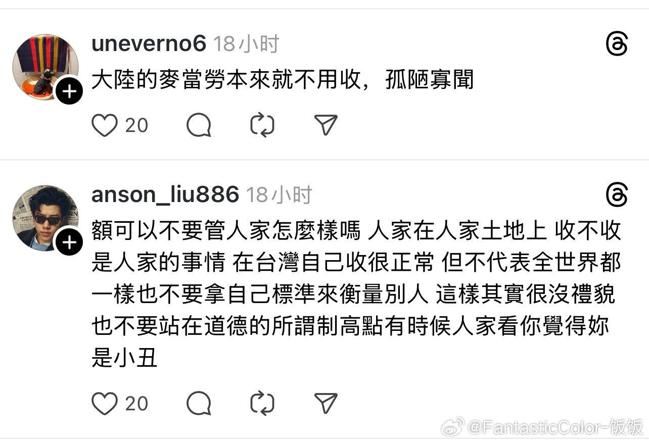 台湾网友吐槽大陆人吃麦当劳不收餐盘,结果被网友回怼