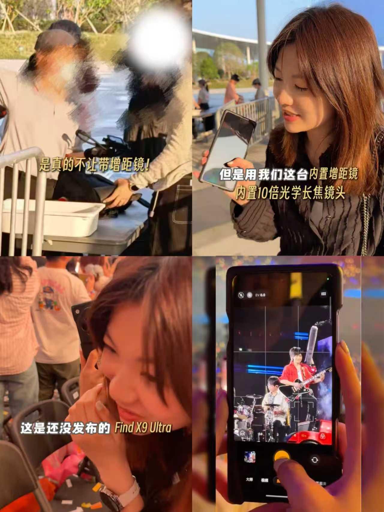 凭什么她能带增距镜去看五月天演唱会? 五月天香港演唱会的安检真的是严得离谱,我看很多人的增距镜都没法带,但是!我刷到OPPO高管发的视频,居然拿着自带增距镜的Find X9 Ultra狂拍超清Live……而且!这台手机还没发布,我真的酸了! - 在网上看了一下这手机,Find X9 Ultra直接就是原生10倍光学变焦镜头,加上专业的防抖系统和哈苏影像,真的可以说是内置增距镜的手机,而且看现场演示,拉到最远连台上阿信的发丝都根根分明,完全没有那种满屏噪点的涂抹感,而且我感觉这10倍长焦比我5倍还稳,一点都不抖,是真出片啊,甚至出的还是超清Live。 - 本来已经被这个“口袋哈苏+手持哈勃”的Find X9 Ultra狠狠拿捏了,结果看到OPPO还在预热,同系列的Find X9s Pro。据说连小屏尺寸都硬塞进了哈苏双2亿像素镜头,这有点香啊。 - 现在就等一波四月发布会了,大家说小屏和Ultra到底冲哪个啊?感觉都是演唱会神器……