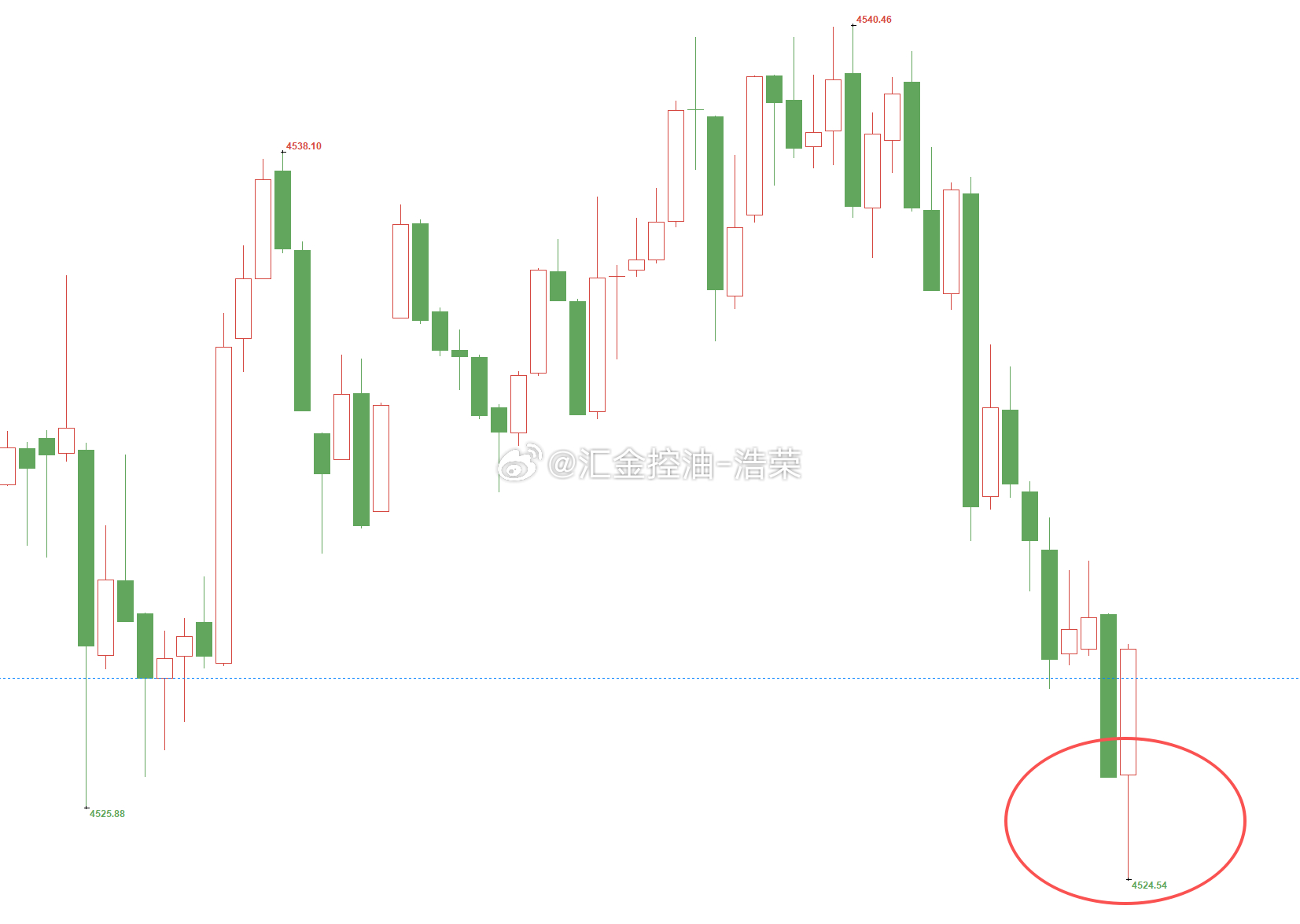 黄金4535位置空,4540位置加仓,行情下跌至4524位置,空单双仓浮盈270